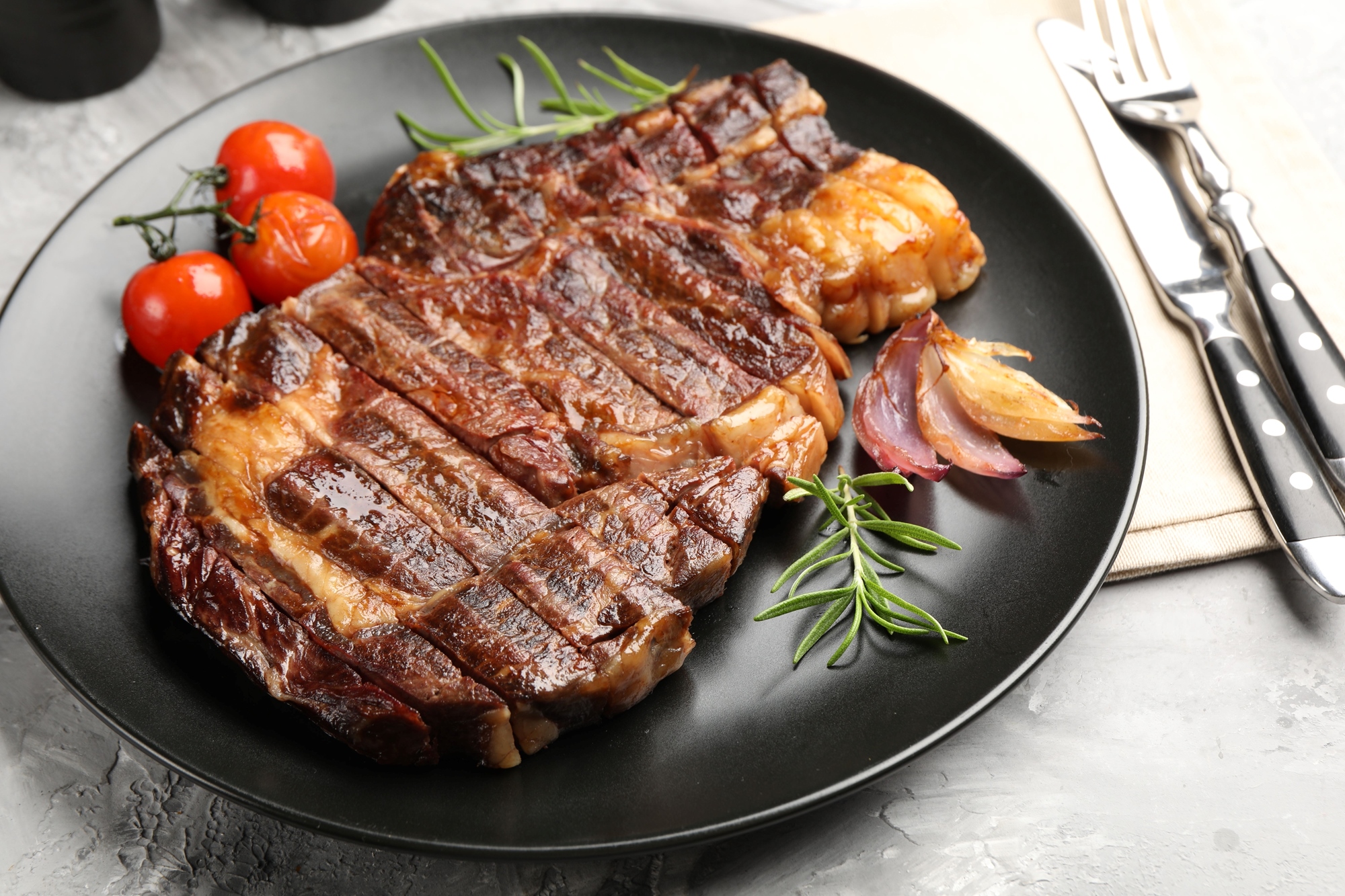 以義式香料與海鹽為基底,將牛排煎至外層金黃、內裡柔嫩多汁。再搭配慢火燉煮的巴薩米克洋葱,酸甜層次提升肉香,使整體風味更加圓潤、增添節慶的高級感。是一道看似樸實、卻能在餐桌上展現質感的經典主菜。
