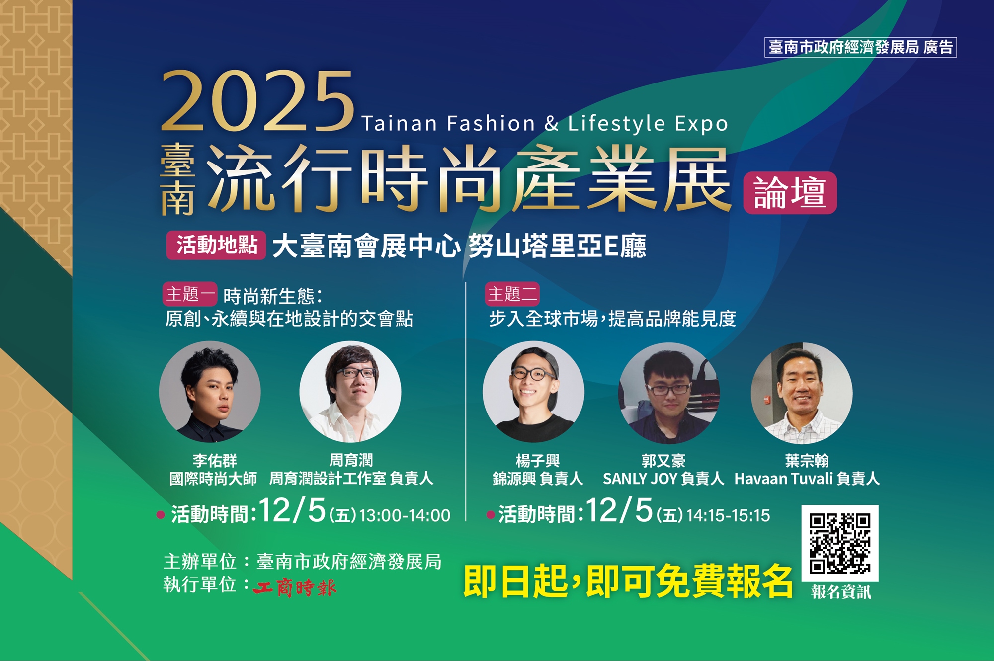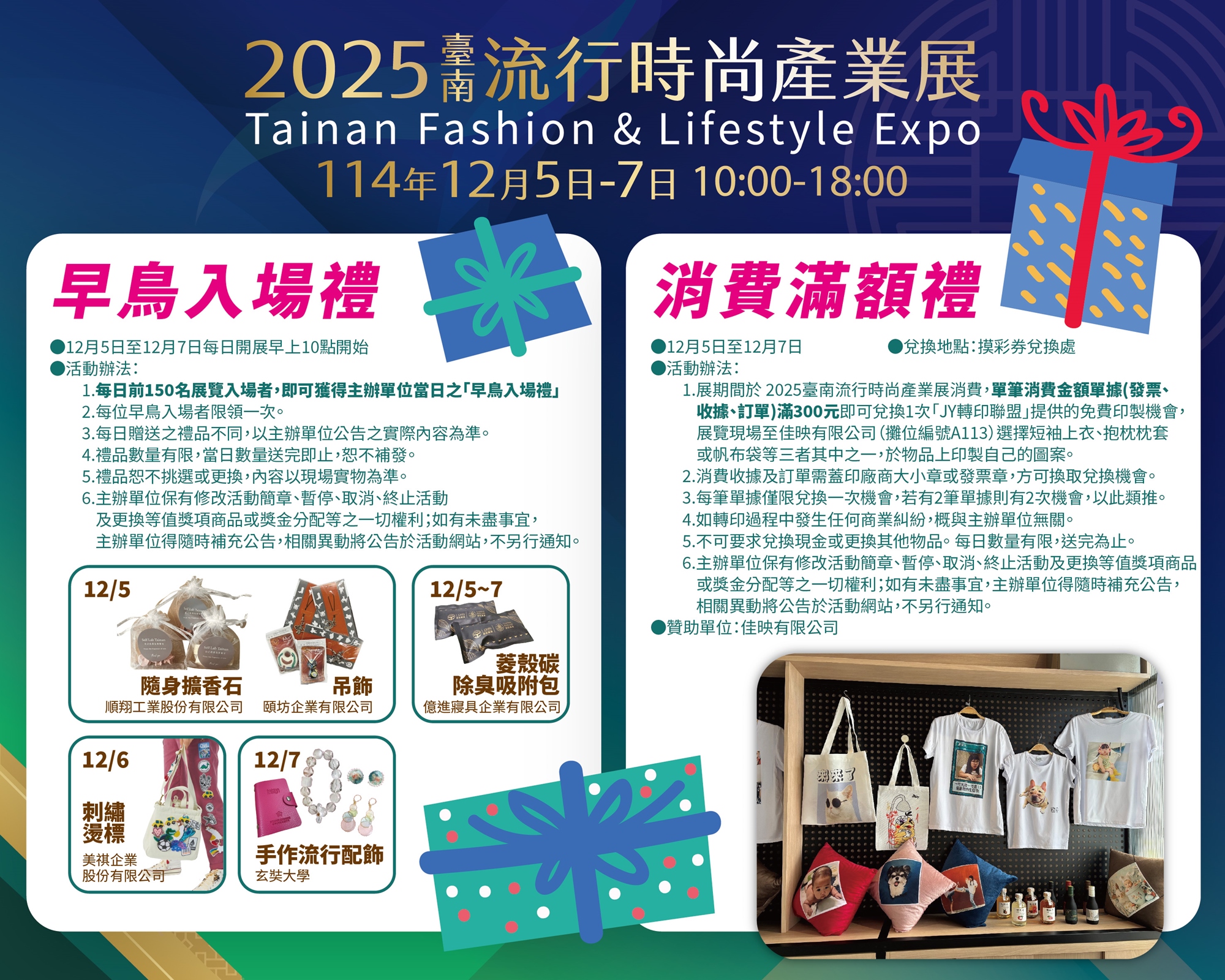 2025臺南流行時尚產業展以「永續 × 原創 × 在地」為主題,集結超過250家時尚、美妝、香氛、手工鞋與原創設計品牌,打造南台灣最大規模的質感選物市集。無論你愛流行、喜歡生活風格、追求質感設計,或想找到屬於自己的穿搭靈感,都能在這裡享受好逛、好買、好拍的時尚體驗。