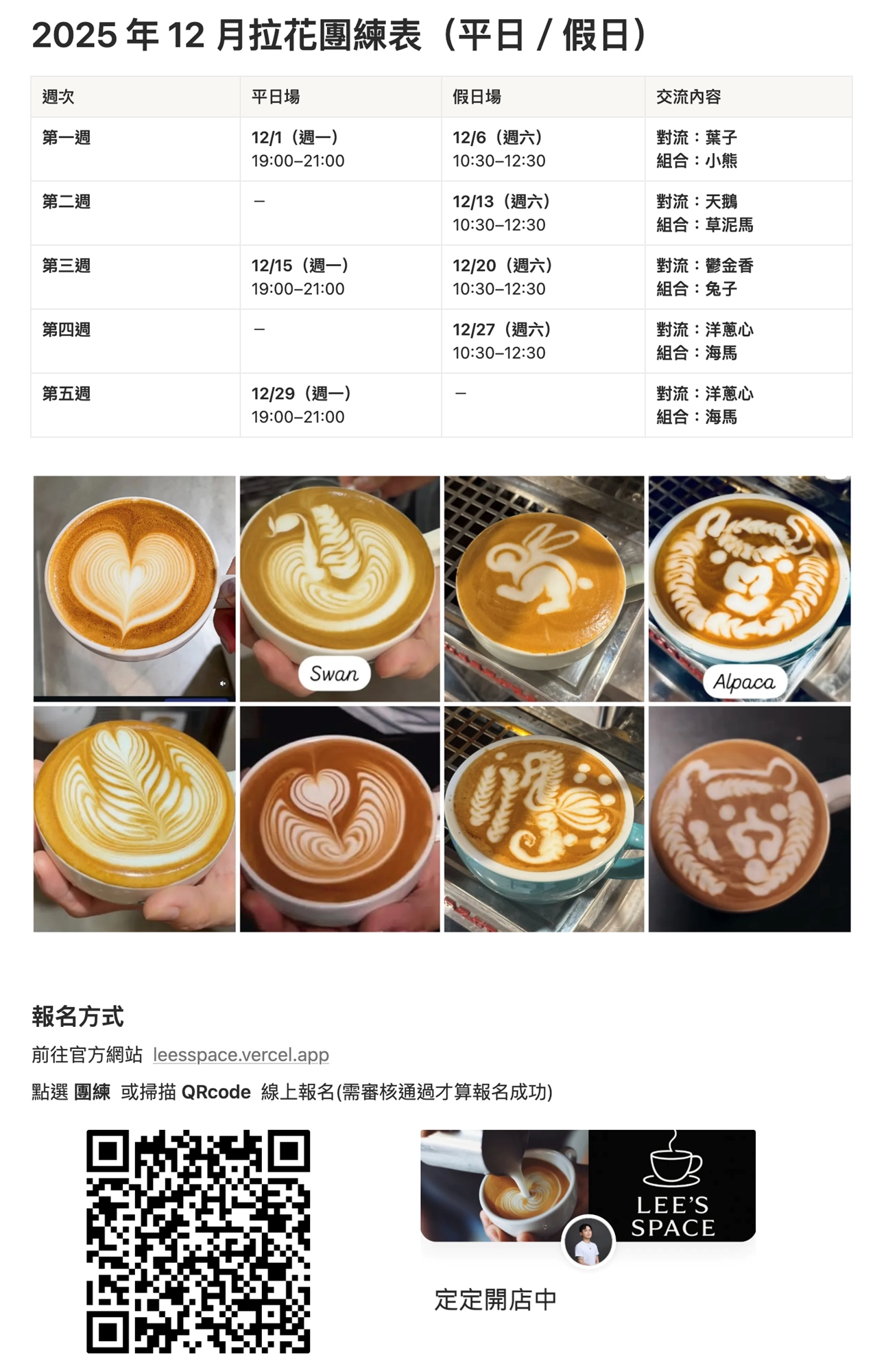 【12月】定定開店中 - 咖啡拉花 團練/教學