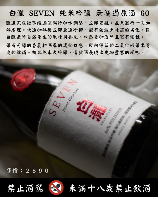 ◆ 白瀧 SEVEN 純米吟釀 無濾過原酒 60