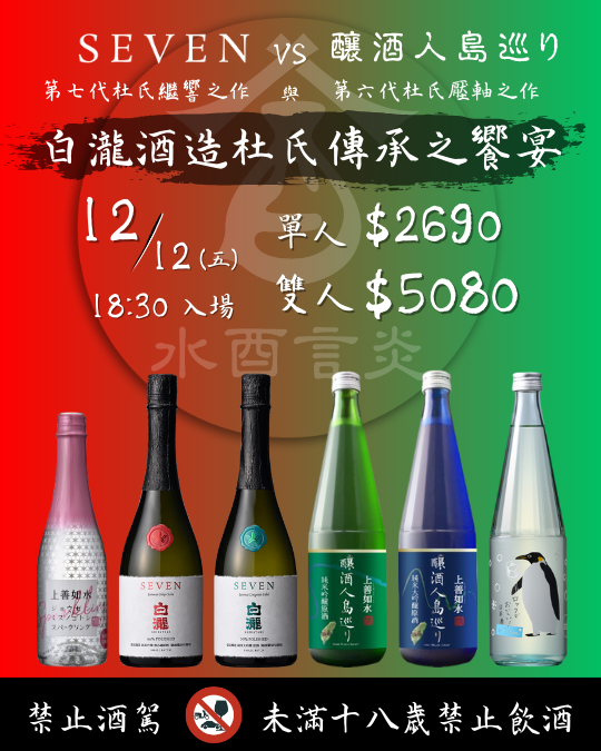 2018年第一款SEVEN 純米大吟釀誕生,隔年便榮獲法國清酒大賽「Kura Master 2019」白金獎。