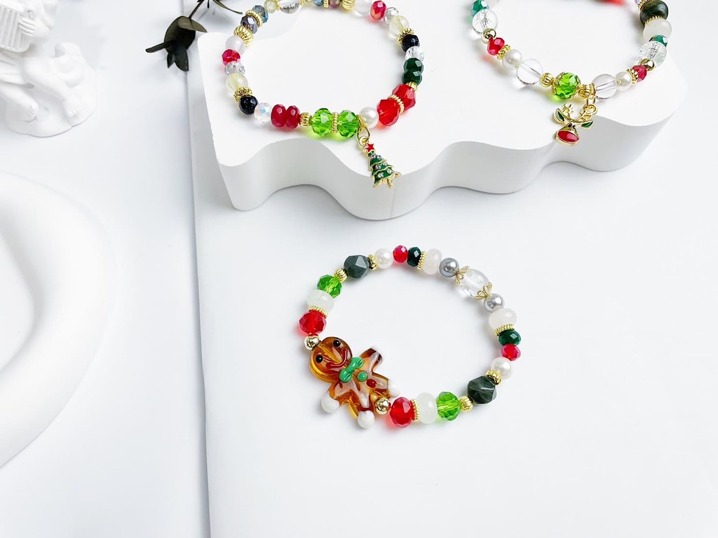 串串手作使用水晶礦石、皓石、琉璃、聖誕掛件等材料,來增添聖誕季節手作的創意感。在DIY玩手作的過程中,同時賦予飾物豐富的元素,以及提升配戴者輕快愉悅的時節感。