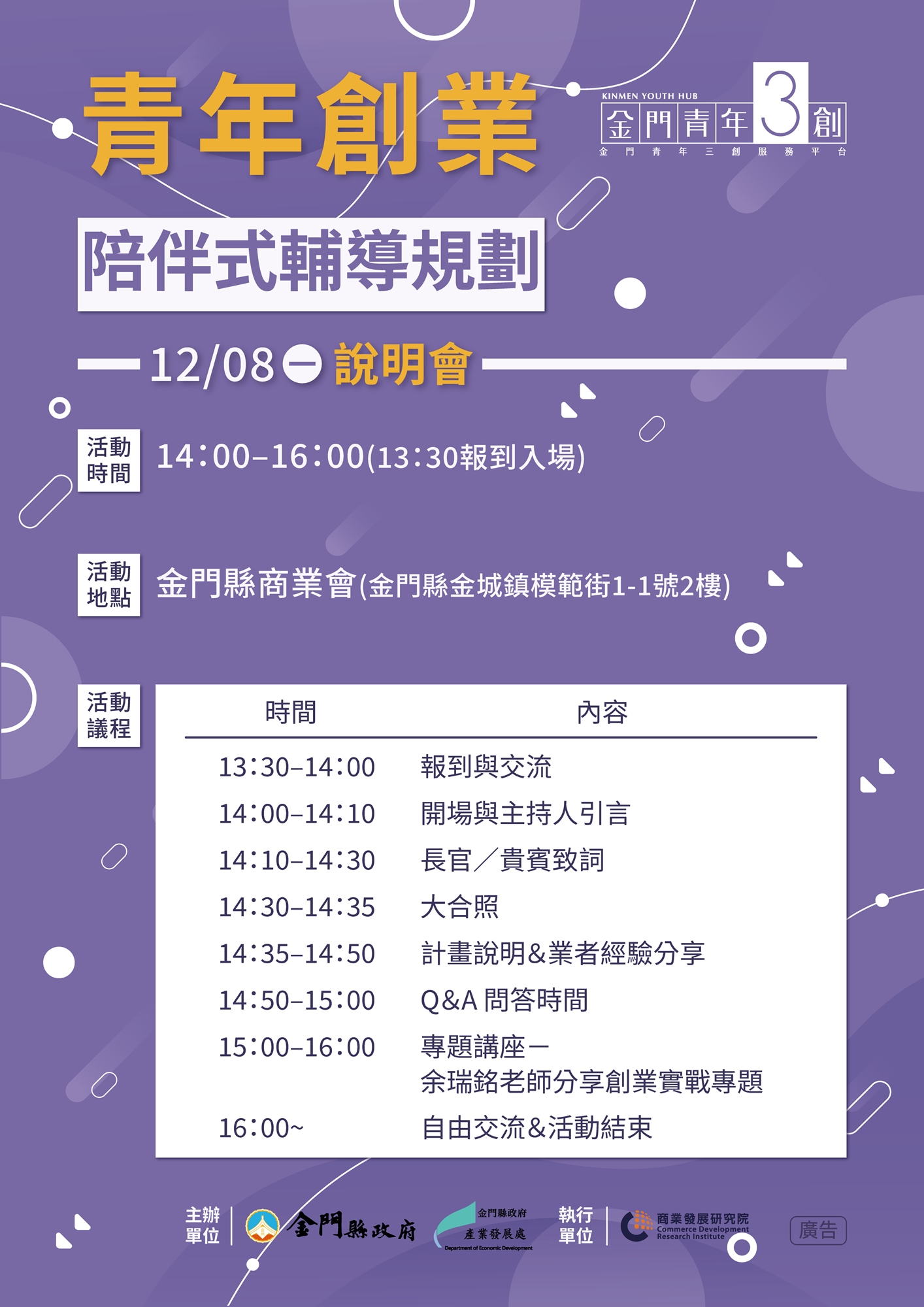 金門青年三創服務平台-金門青年創業陪伴式輔導說明會