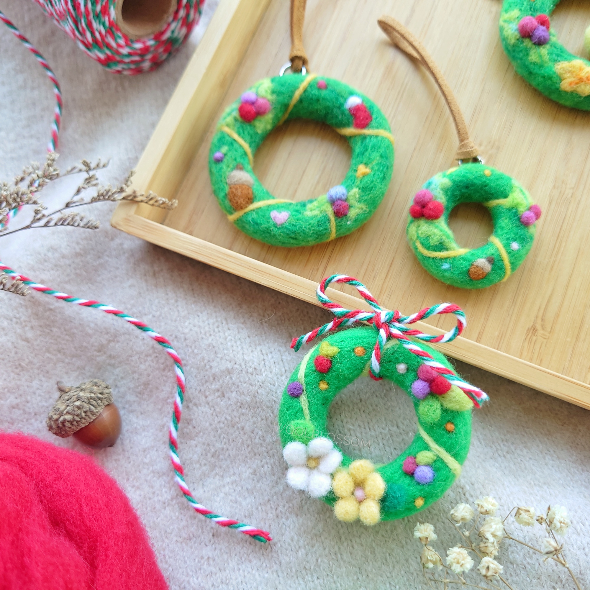 課程1:聖誕羊毛氈小花圈吊飾
