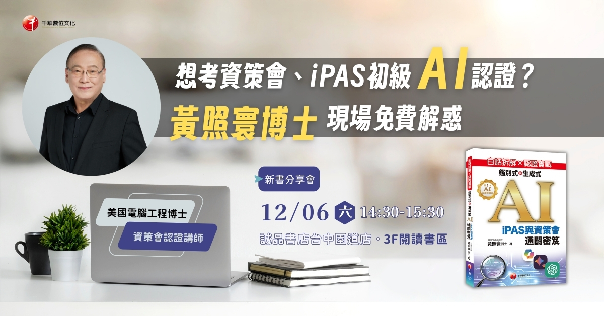 將以新書《白話拆解 × 認證實戰:鑑別式與生成式 AI》為骨幹