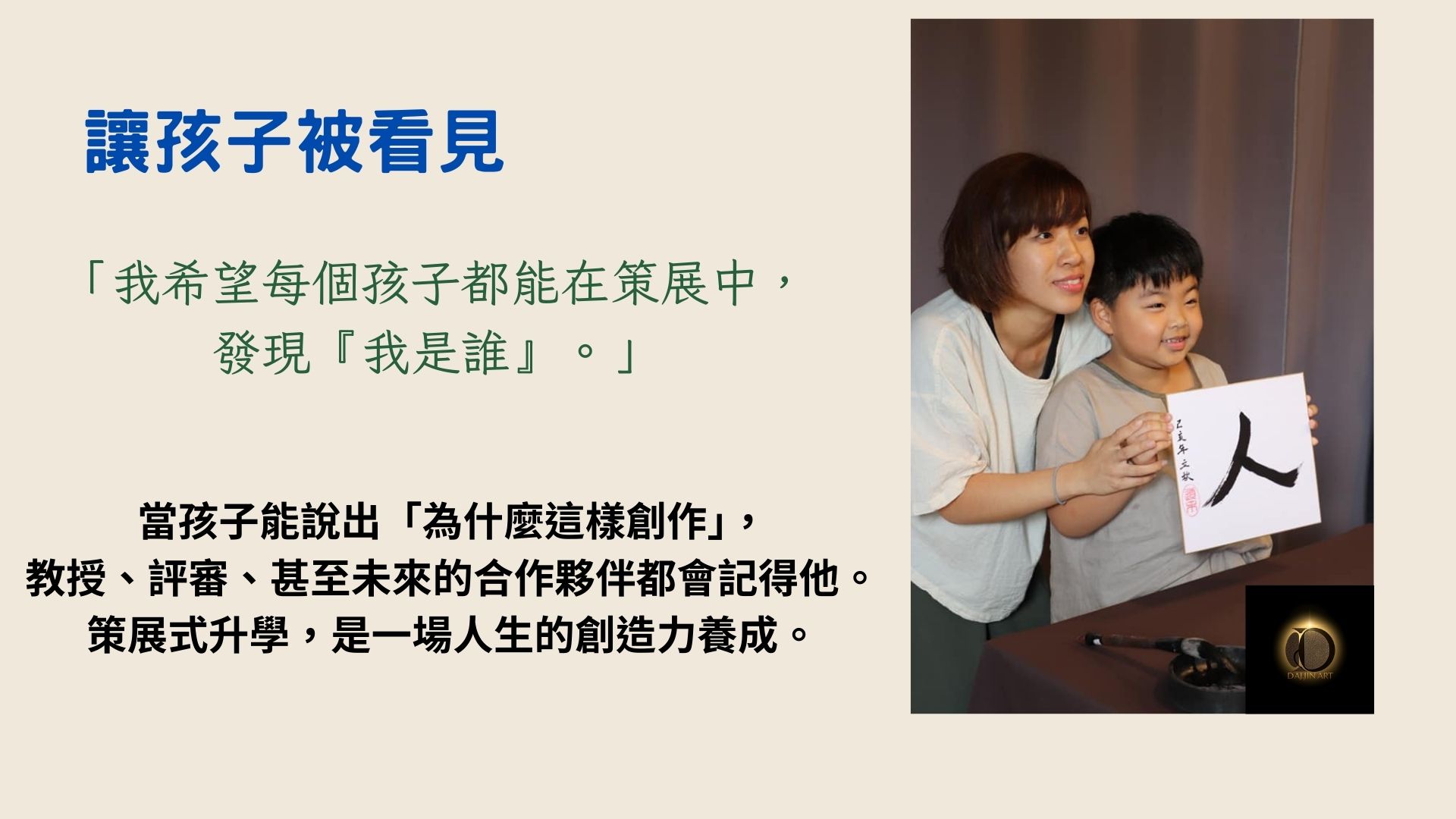 → 孩子從創作者 → 成為能被看見的“展覽者”。