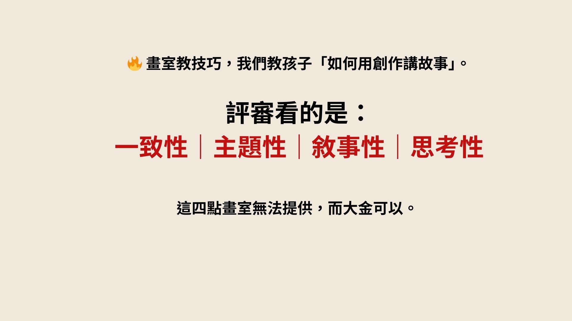 而是 一套完整的敘事+作品+展現能力的培養流程。