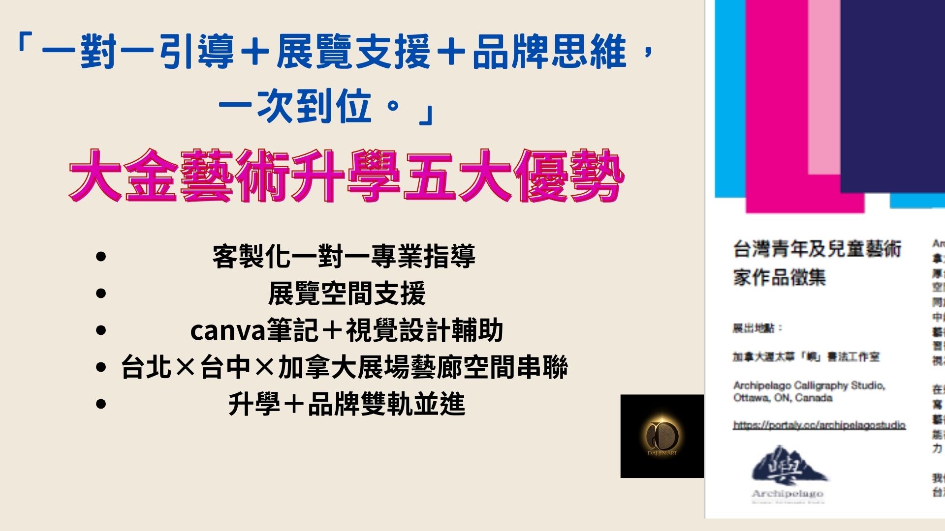 我們負責:定位、主題、敘事、策展、升學策略。