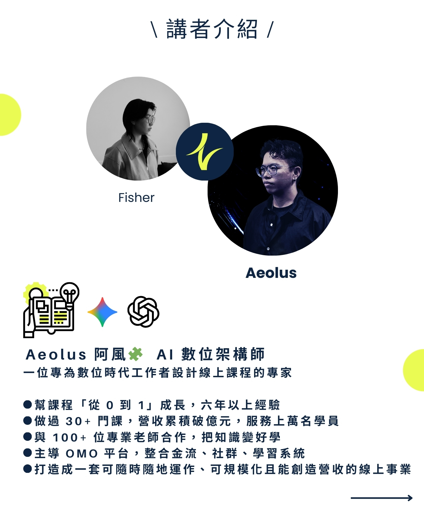 我們邀請到兩位風格完全不同、但都成功以 AI 打造個人事業 的跨界實踐者——