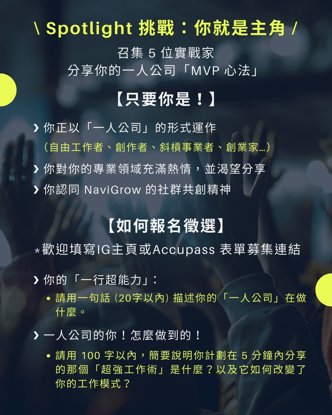 更多活動資訊 歡迎追蹤我們 IG: Navigrow