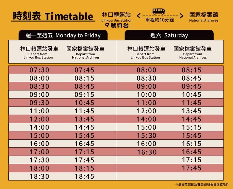 機捷A9林口轉運站9號月台 →國家檔案館館正門(車程約10分鐘)