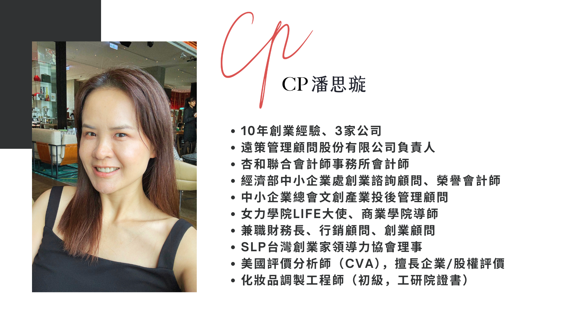 本次【斜槓沙龍】聖誕場,我們邀請到「最懂創業者」的會計師 —— CP 潘思璇。