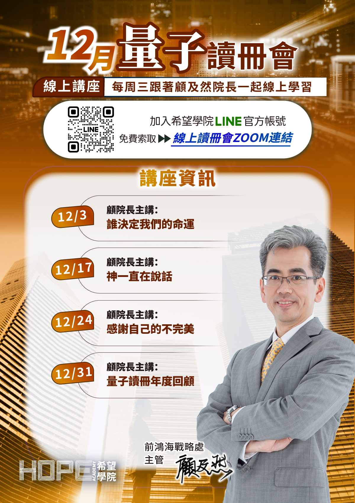 加入希望學院LINE官方帳號,免費索取ZOOM會議連結