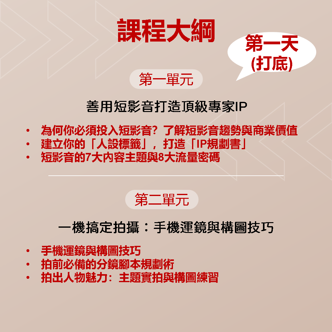 你將完成一支能建立觀眾好感度的專家級IP短影音。