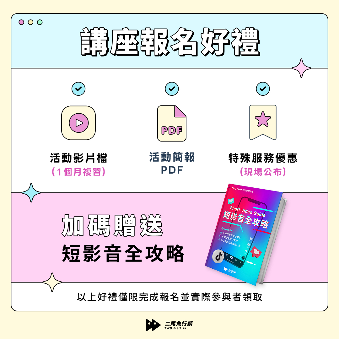 完成報名並實際參加講座,即可領取下列活動優惠: