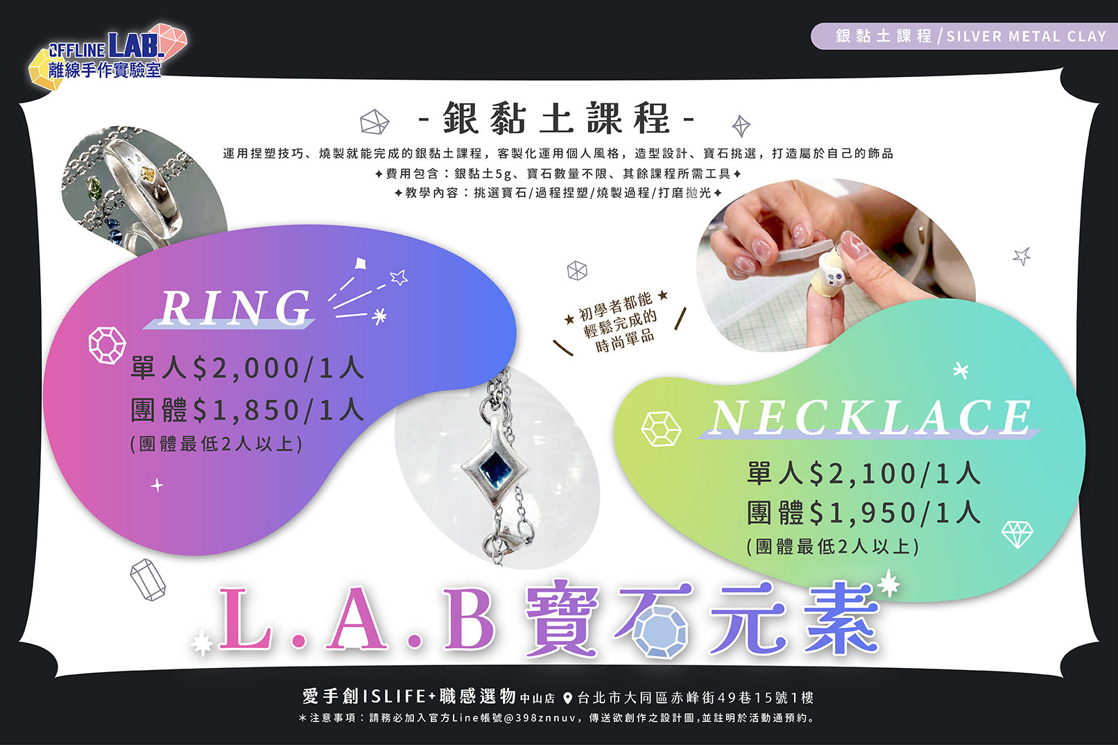 好消息好消息📣 店鋪除了原本有趣的Tufting簇絨槍DIY,現在流行一段時間的銀黏土課程也登陸OFFLINE Lab.離線手作實驗室啦🧪