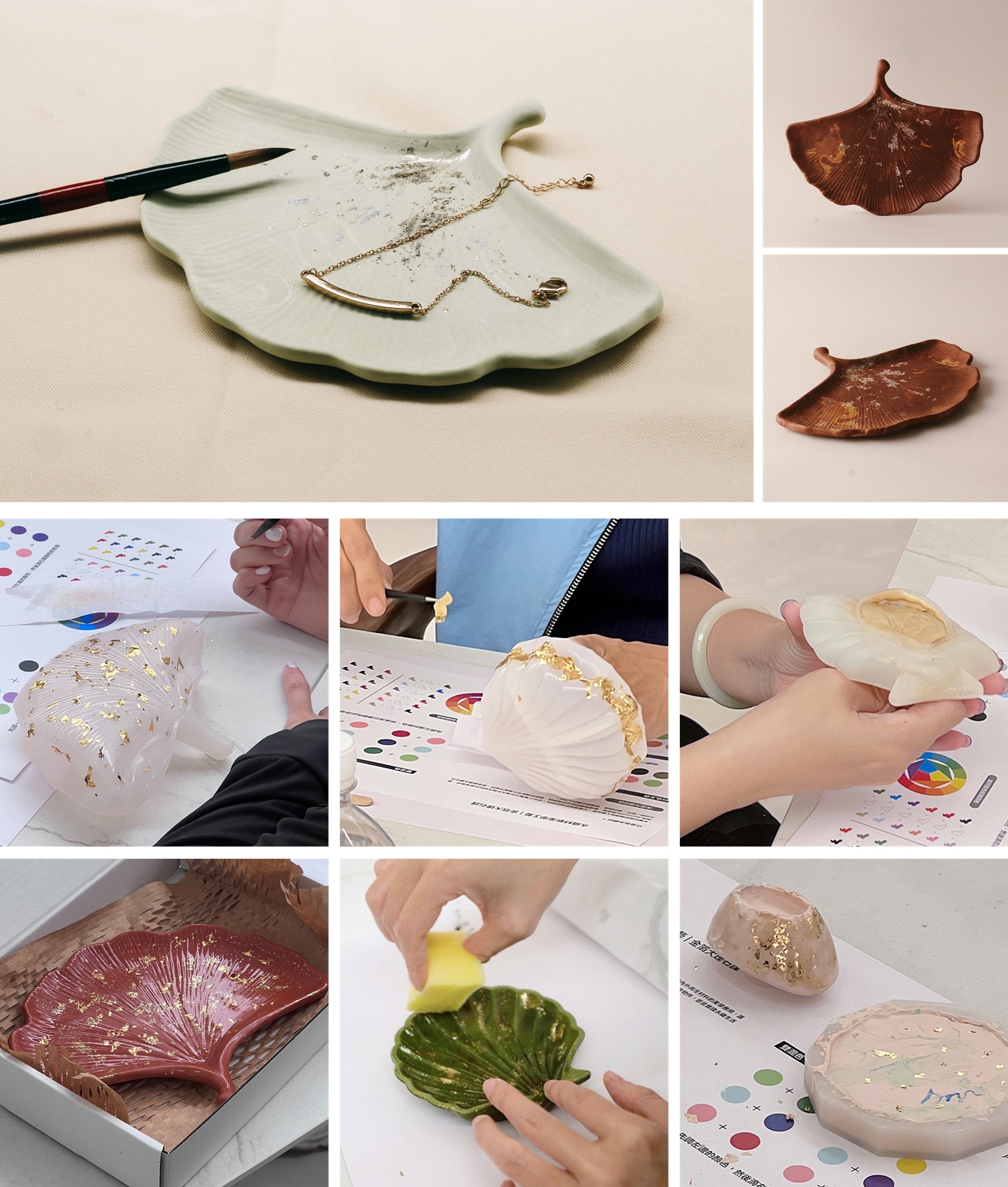 將自然的紋理留在掌心,隨著金箔的流動與色彩交融,一片銀杏葉,化作優雅的光之器皿。 由拾石工藝帶領您透過手工灌模工藝,創作出獨一無二的大理石紋銀杏葉盤。金箔在光影下閃爍,宛如秋日午後的靜謐湖面,讓每一次灌模、打磨,都成為與自己對話的片刻。