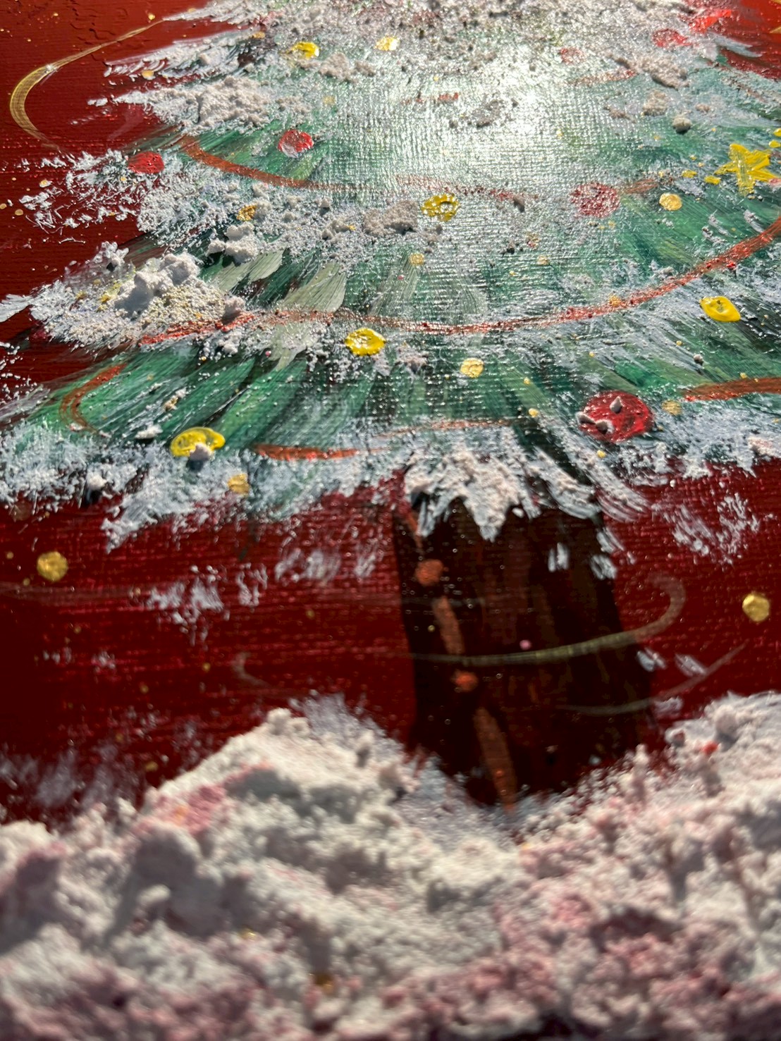 ☑️ 繪畫教學:雪景色彩搭配+樹葉筆觸層次+石英砂肌理技法