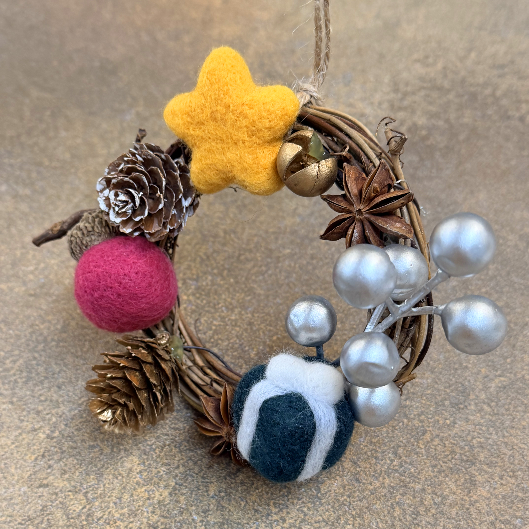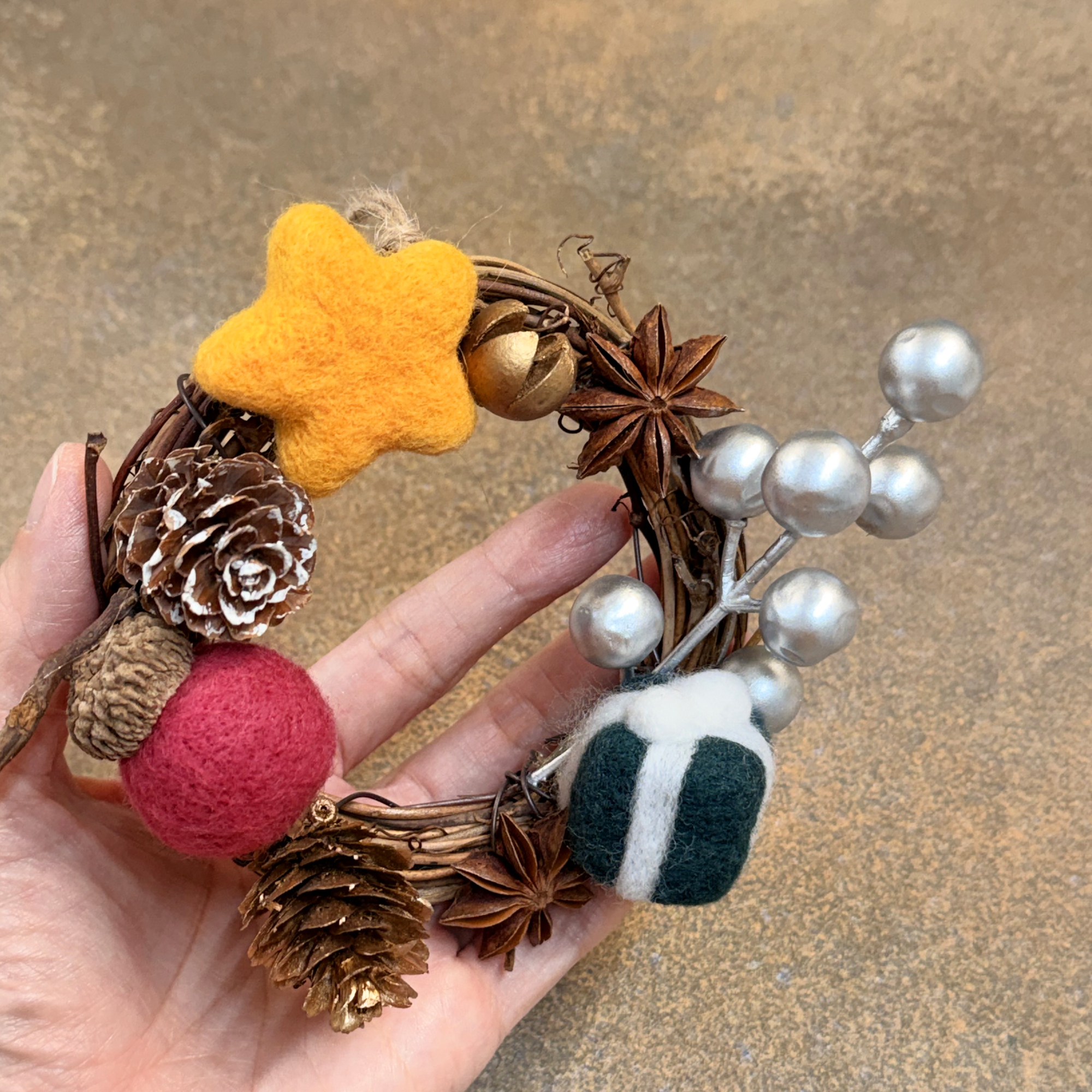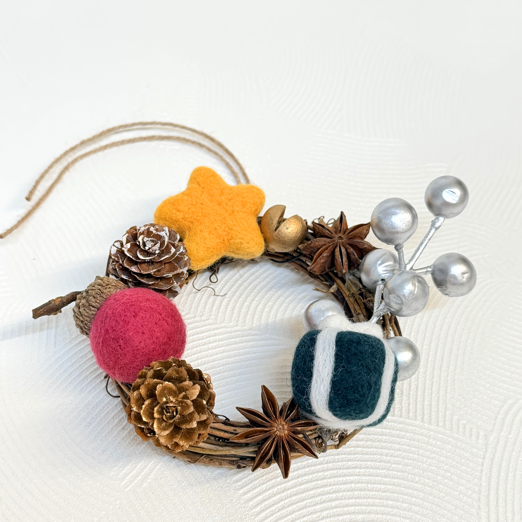 ● 使用美麗諾短纖羊毛,搭配自然果實等複合媒材