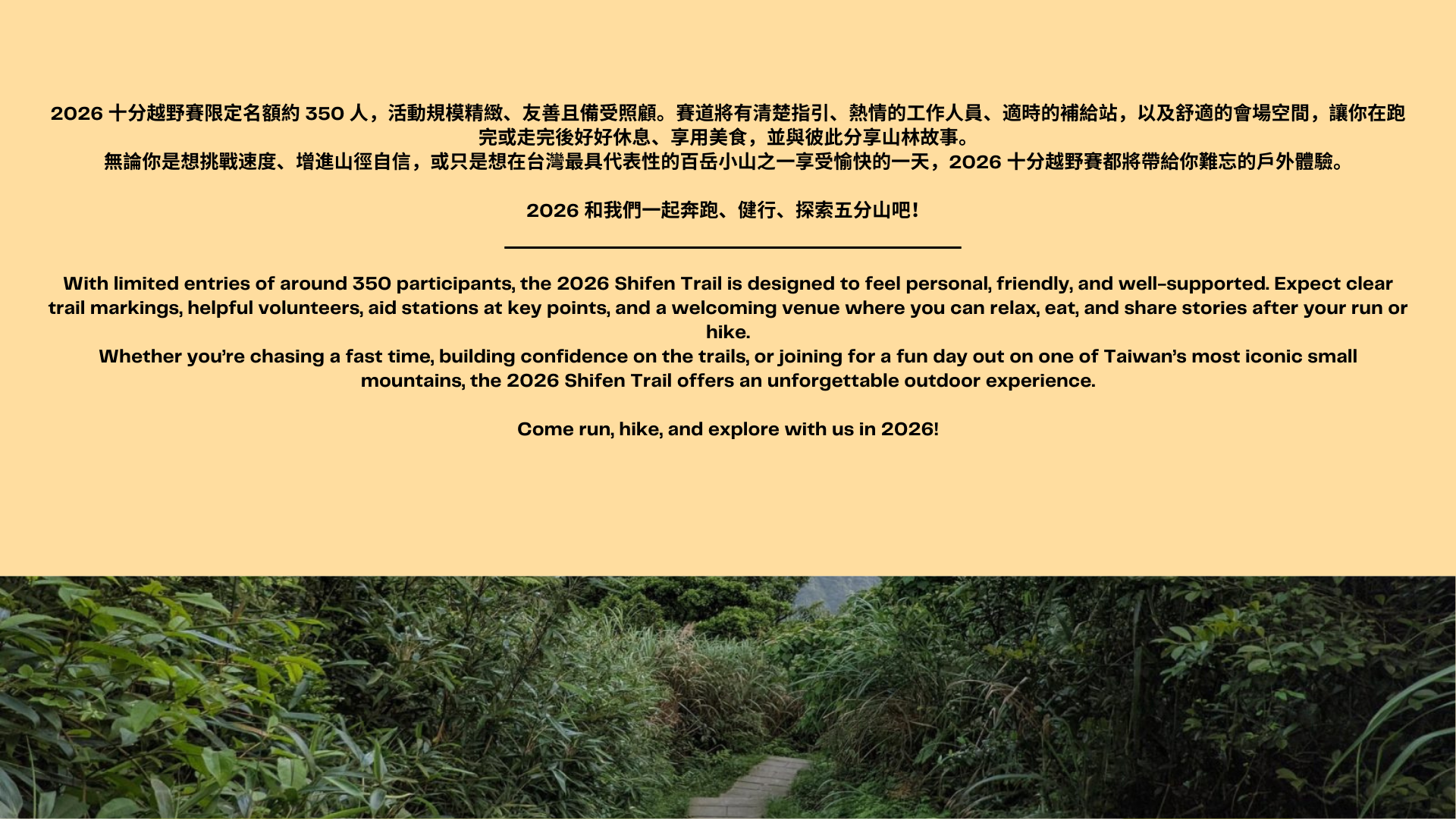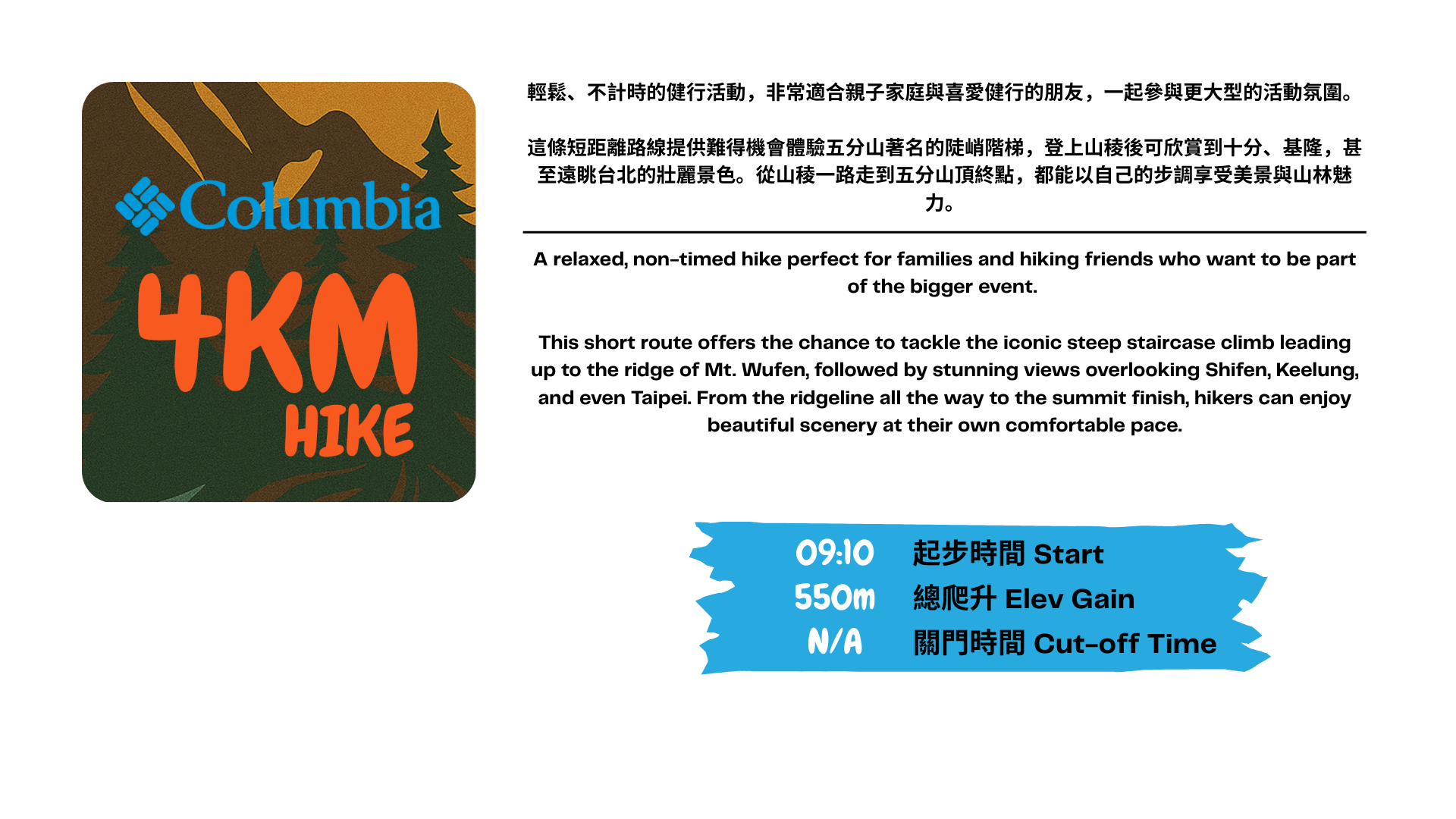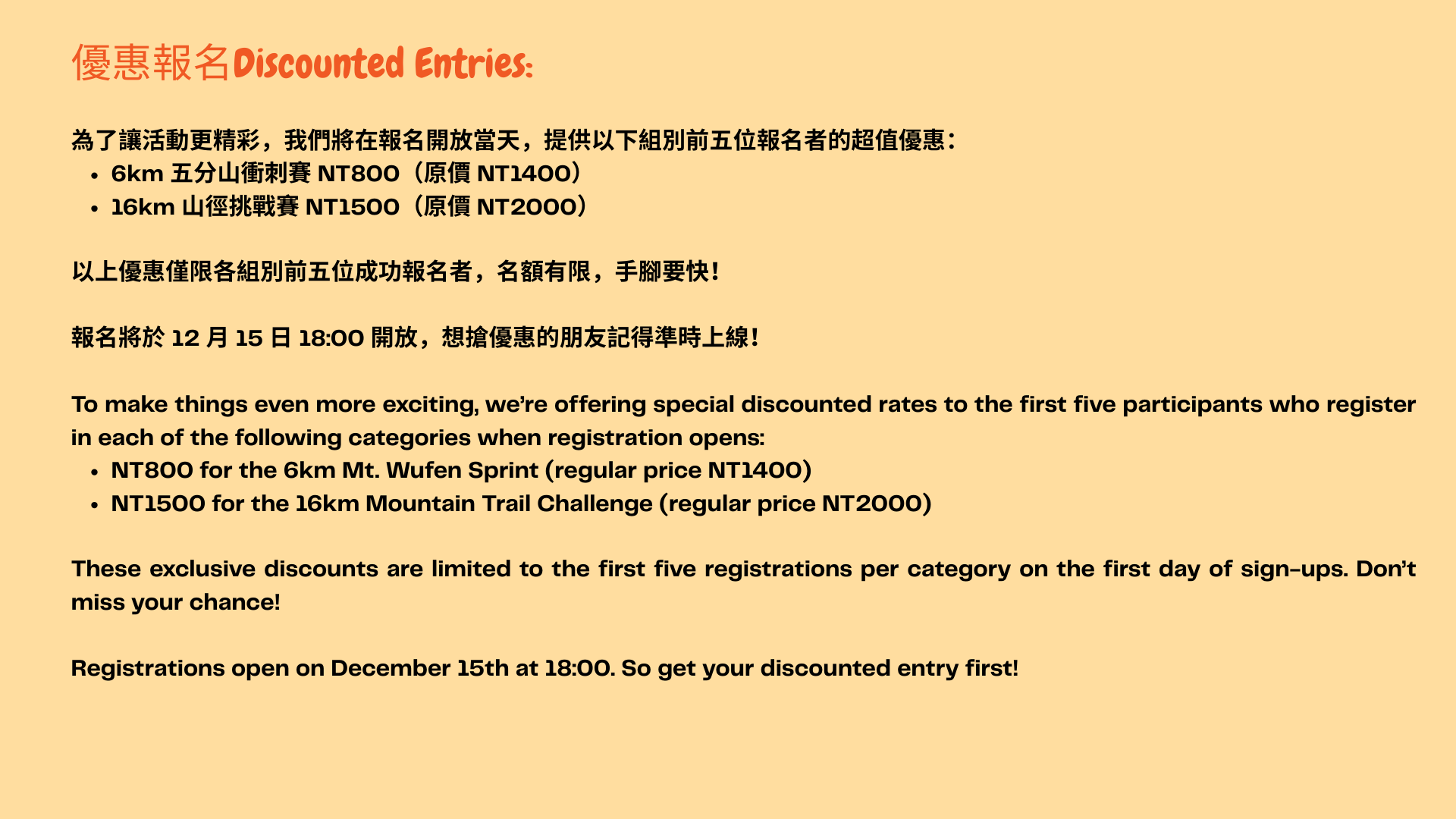國際參與者應在抵達台灣之前購買此越野跑活動的旅行保險。