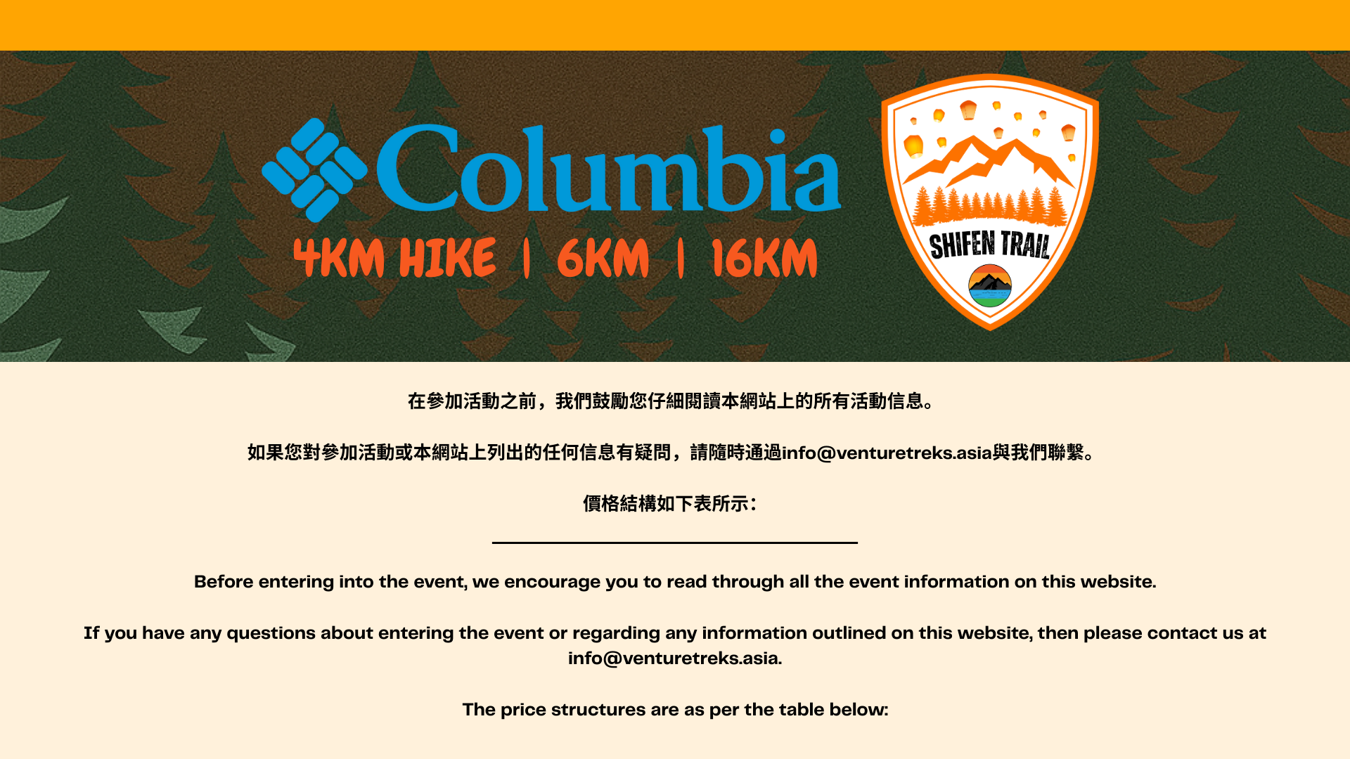 請確保仔細閱讀豁免協議的條款,仔細閱讀我們的活動豁免協議表格,並理解其中的內容。 活動豁免協議表格可在Venture Treks網站和Accupass註冊系統找到。