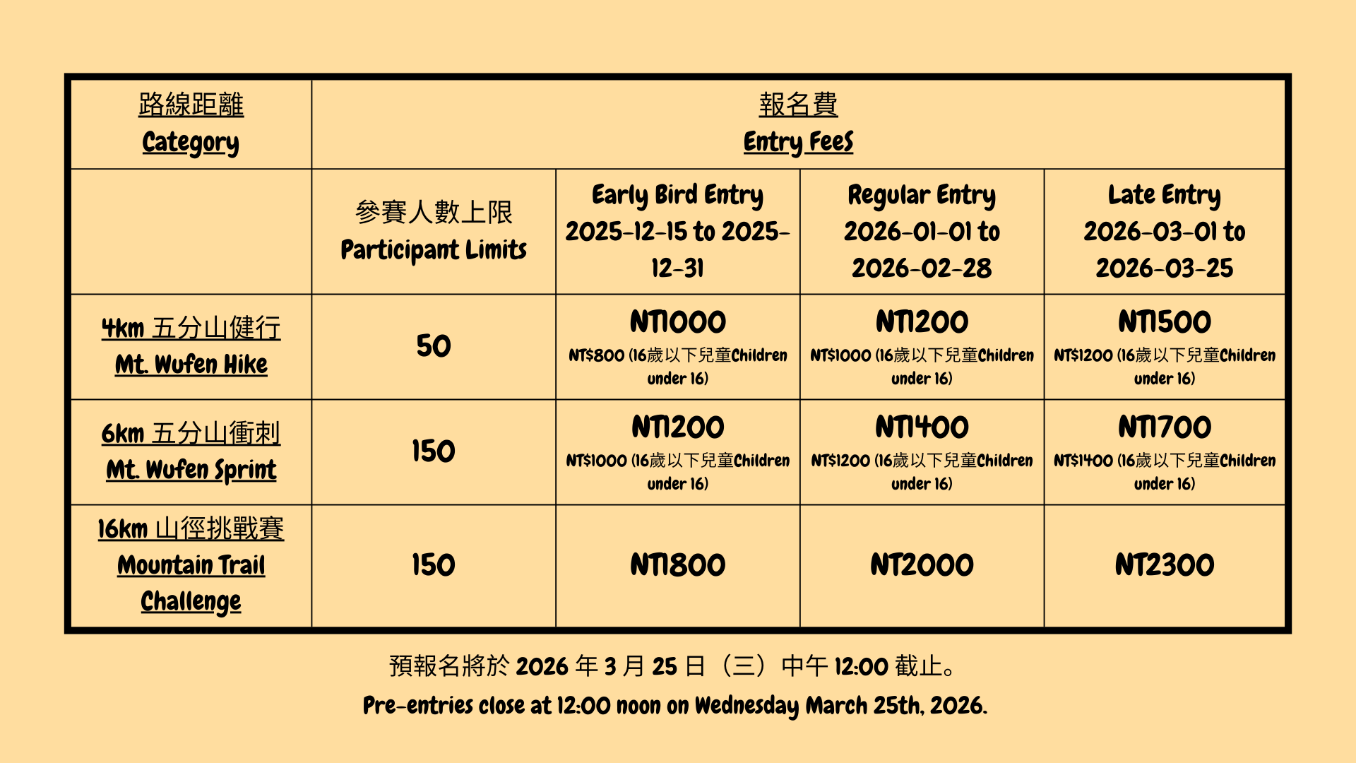 報名截止時間為2026年3月25日中午12點,如提前報名額滿由賽事主辦單位決定是否加開。