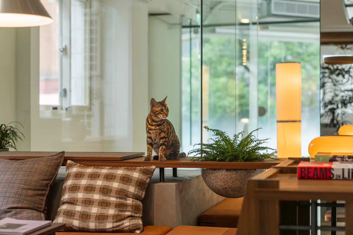 🐾店內有兩隻美麗的豹貓,空間另一端為貓旅館