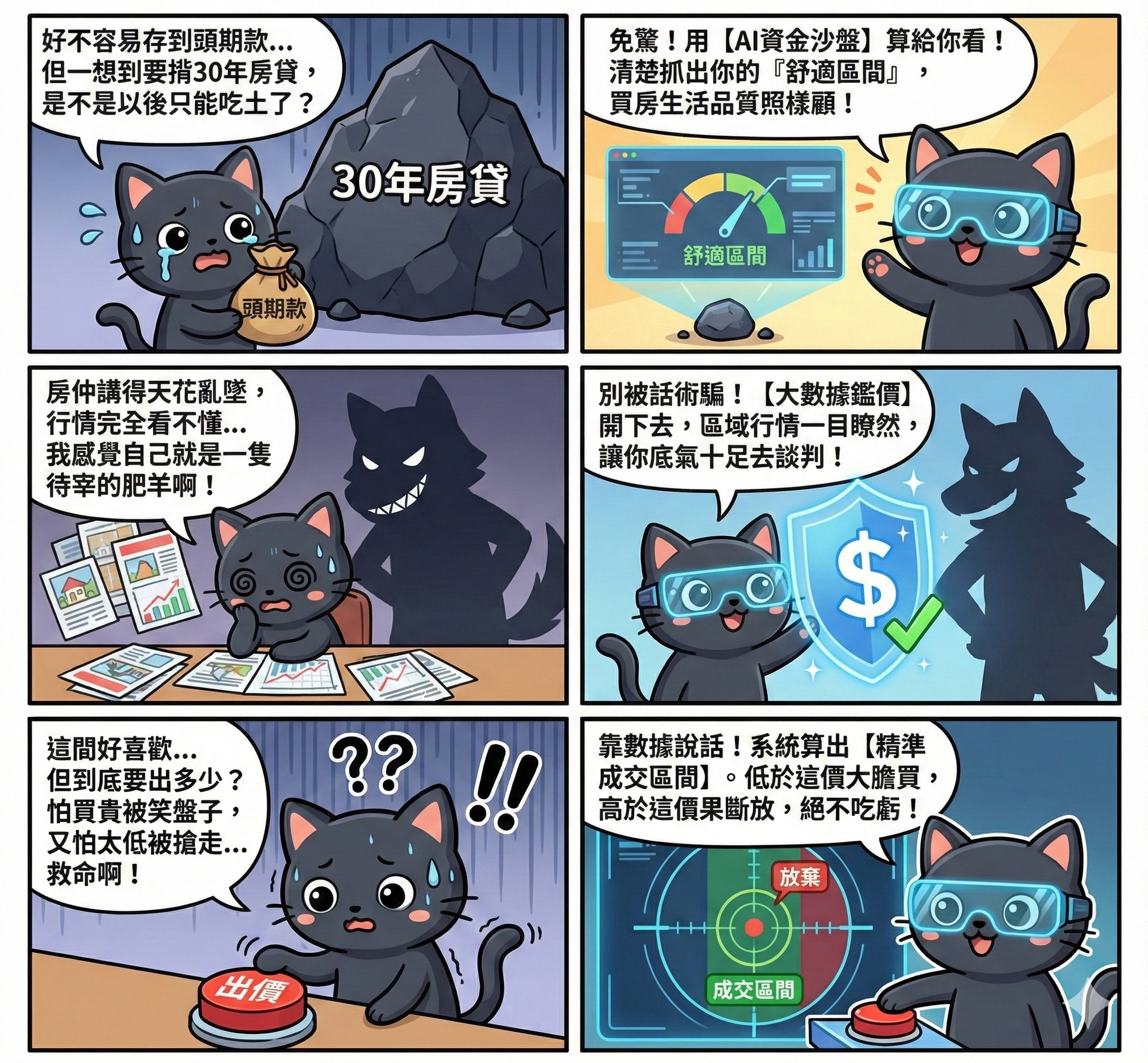 - 😰 痛點:「遇到喜歡的房子卻不敢出價,怕買不到又怕買貴,在糾結中錯失良機。」
