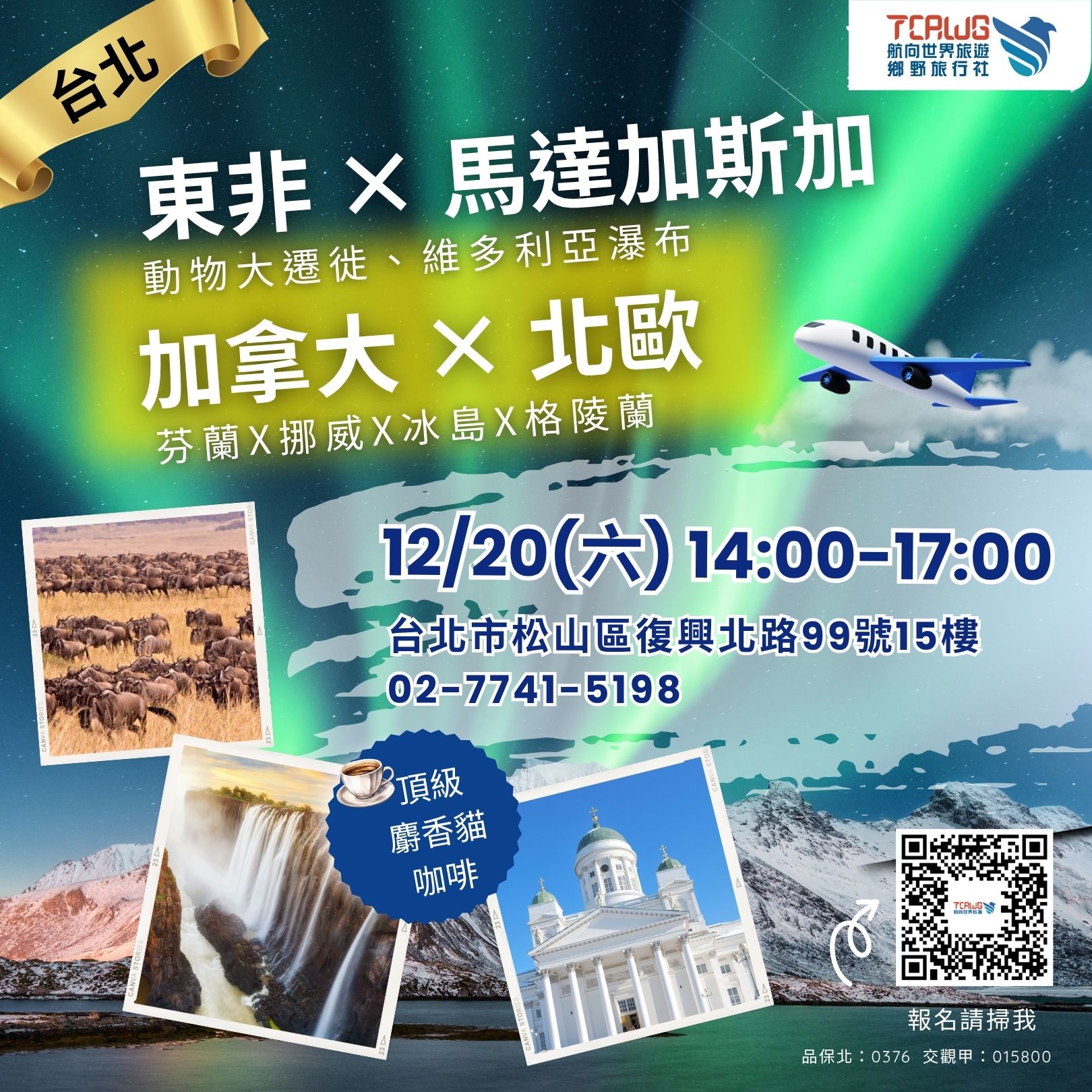 ✈️ 長線旅遊|動物大遷徙&極光雙主題講座12/20(六)台北場|動物大遷徙 × 維多利亞瀑布 × 極光推薦