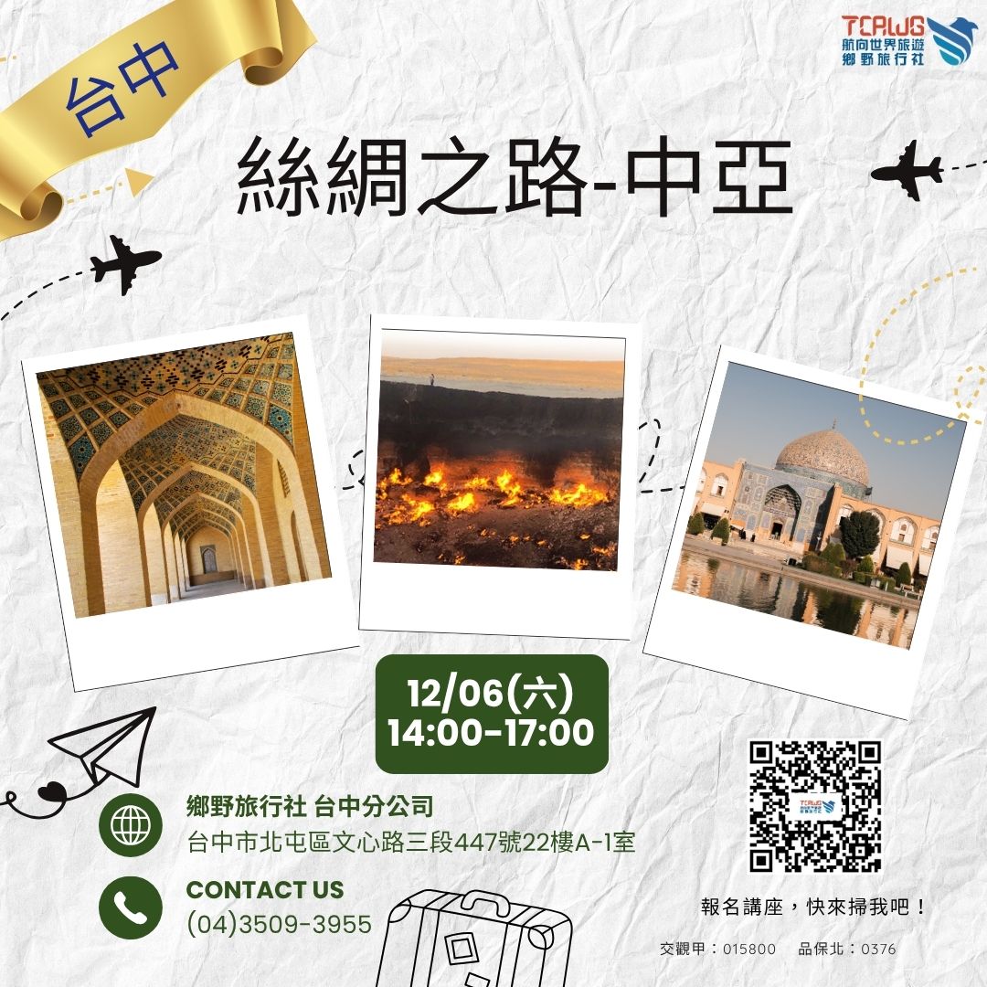 ✈️ 長線旅遊|中亞古絲綢之路專題講座12/6(六)台中場|中亞推薦~古絲綢之路