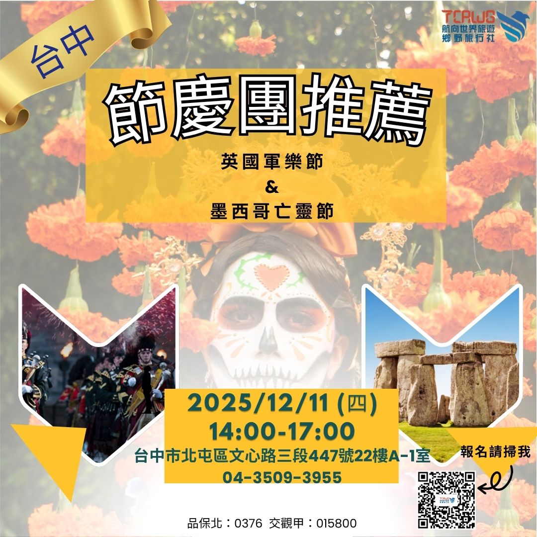 ✈️ 長線旅遊|歐洲軍樂節 × 墨西哥亡靈節雙主題講座12/11(四)台中場|歐洲英國軍樂節 × 中美墨西哥亡靈節