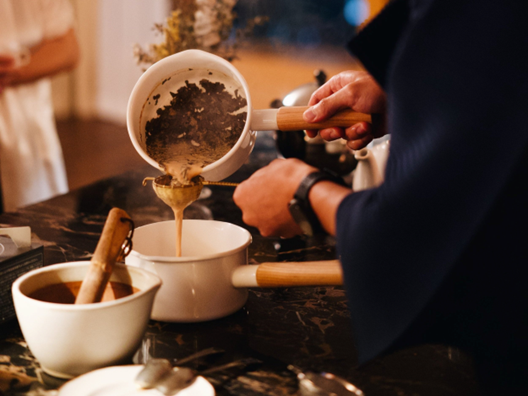 以香料熱紅酒或鍋煮奶茶等溫暖飲品迎接嘉賓,共同開啟冬夜儀式感。