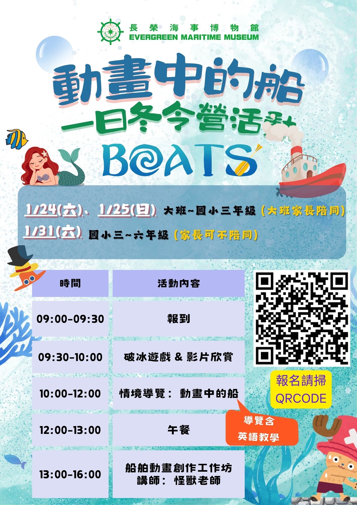 為讓學童親近船舶,引起不同興趣的學童學習動機,本館擬結合受小朋友歡迎的動畫,辦理一日冬令營活動。