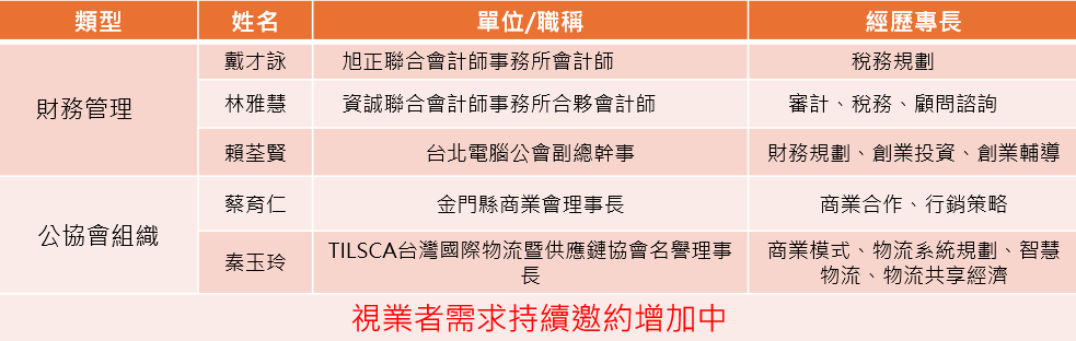 *顧問名單(將視業者需求持續更新中)