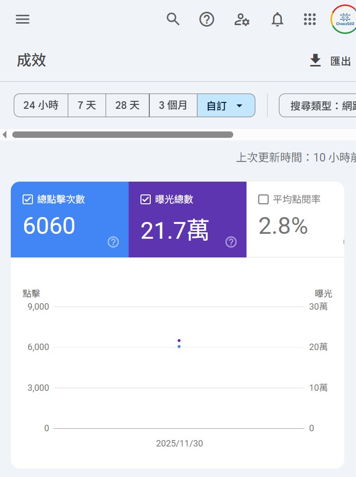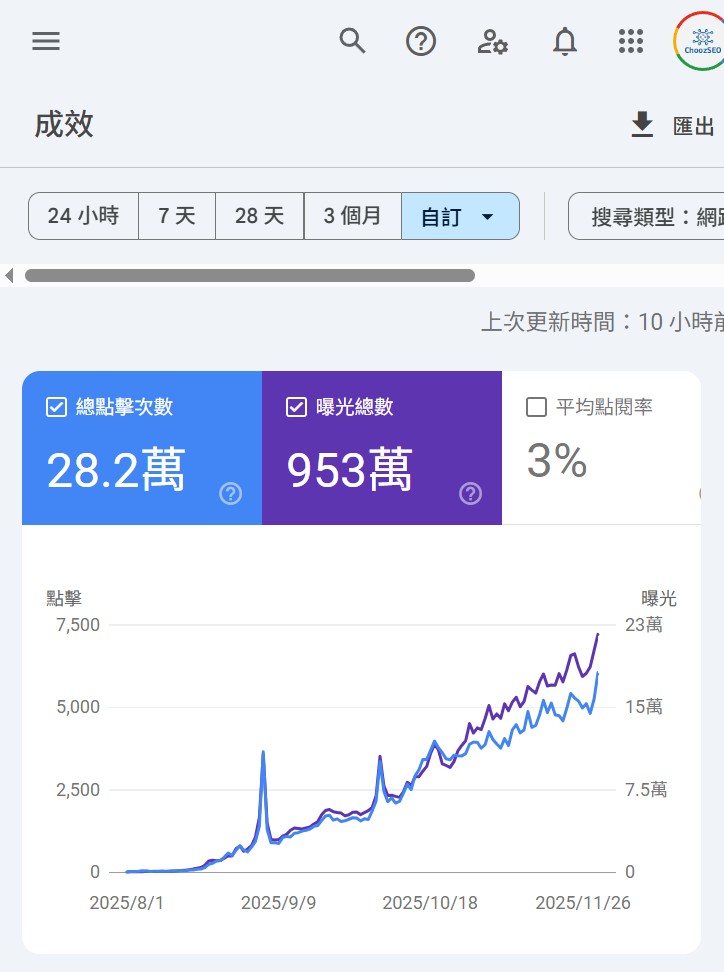 - 成長到 953 萬次曝光、單日 6060 次點擊