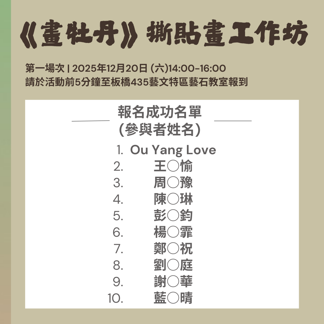o 報名成功名單將於活動前公告於活動頁面及板橋 435 藝文特區 Facebook 粉專相關貼文留言處。