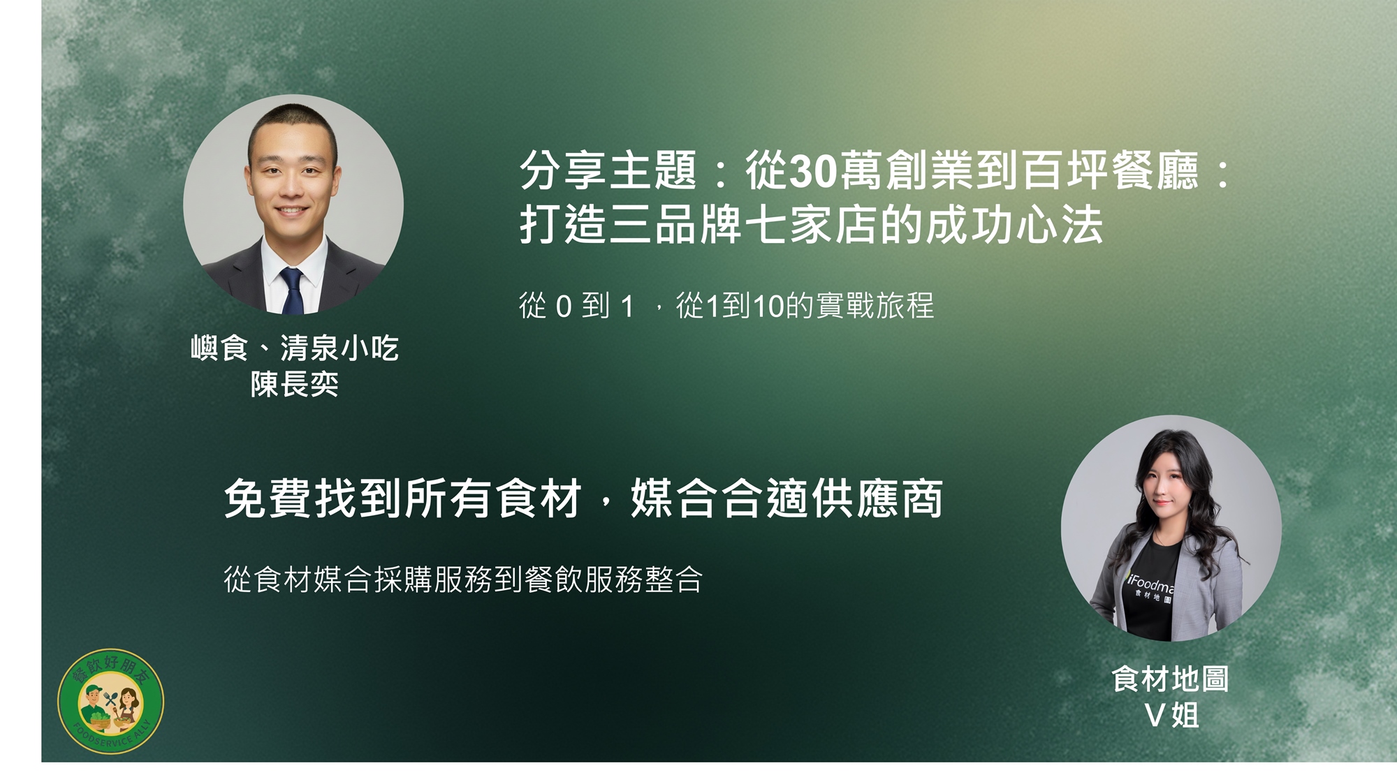 14:10 │ 14:40 | 成功餐飲業者主題分享 | 嶼食、清泉小吃 ︱執行長 陳長奕 |