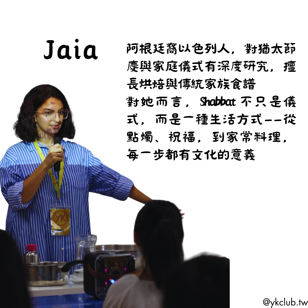 原定講師為摩洛哥裔以色列人 Avigail,本次將由同樣深諳猶太文化的 Jaia 帶領大家體驗 Shabbat。