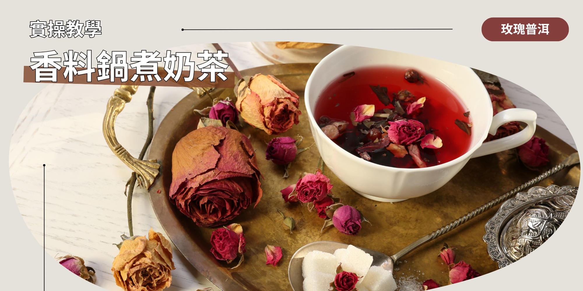當歲月遇見浪漫! 我們將以醇厚的普洱黑茶為基底,結合伊朗、中國、台灣等不同產區、不同香氣特徵的玫瑰。課程中將實作玫瑰純露的注入、玫瑰花瓣的熬煮,以及玫瑰糖漿的點綴,探索如何讓玫瑰的清甜花香完美穿透普洱的厚重陳韻,創造出溫暖而層次豐富的口感。