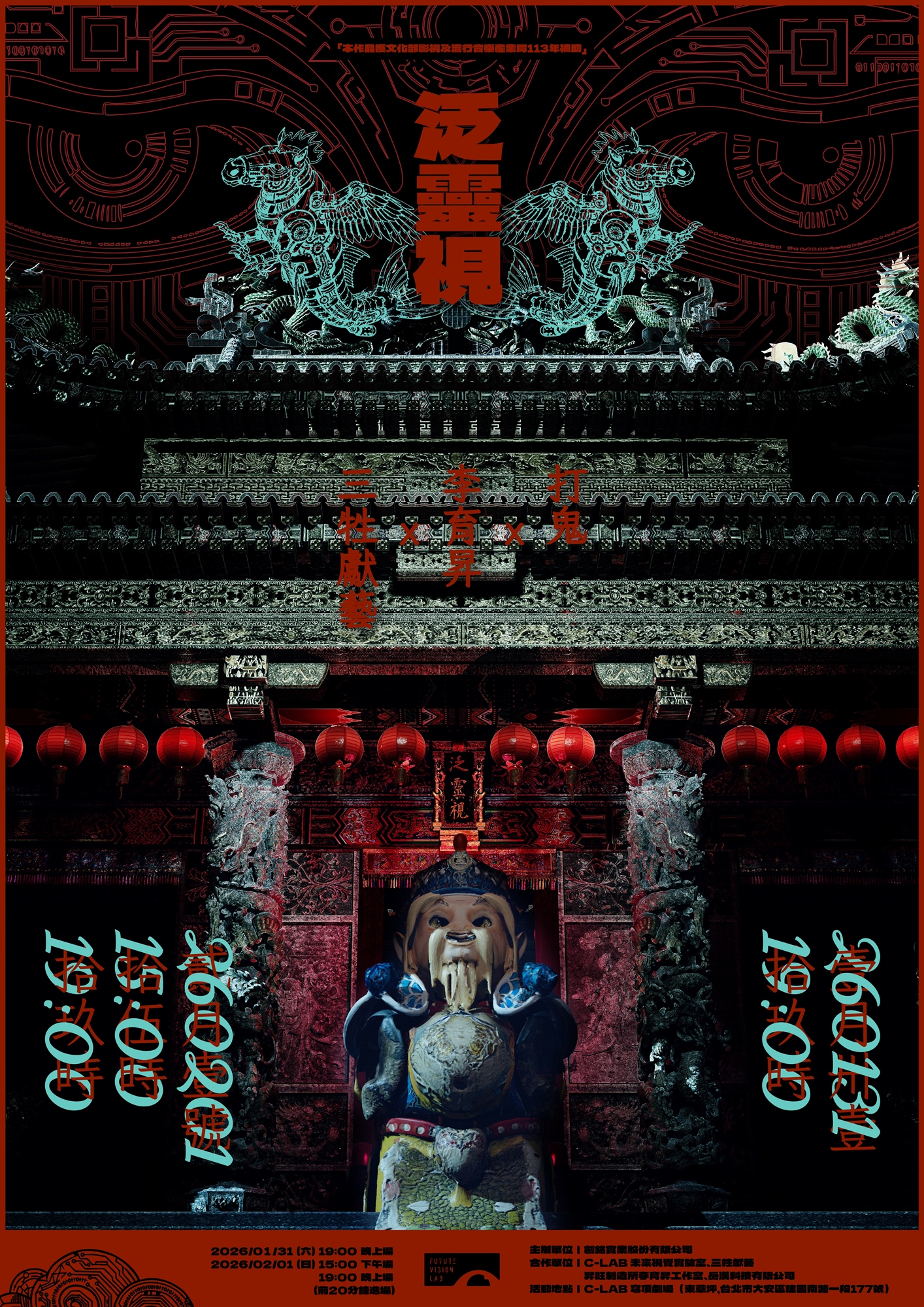三牲獻藝 x 李育昇 x 打鬼林岳漢,三方皆長期以台灣在地文化為創作素材,卻分屬不同創作領域共同呈現。!!透過音樂、賽博大仙尪仔,遊戲引擎、AI 技術在同一空間中形成一個可回饋、自我生成的迴圈展演!!!