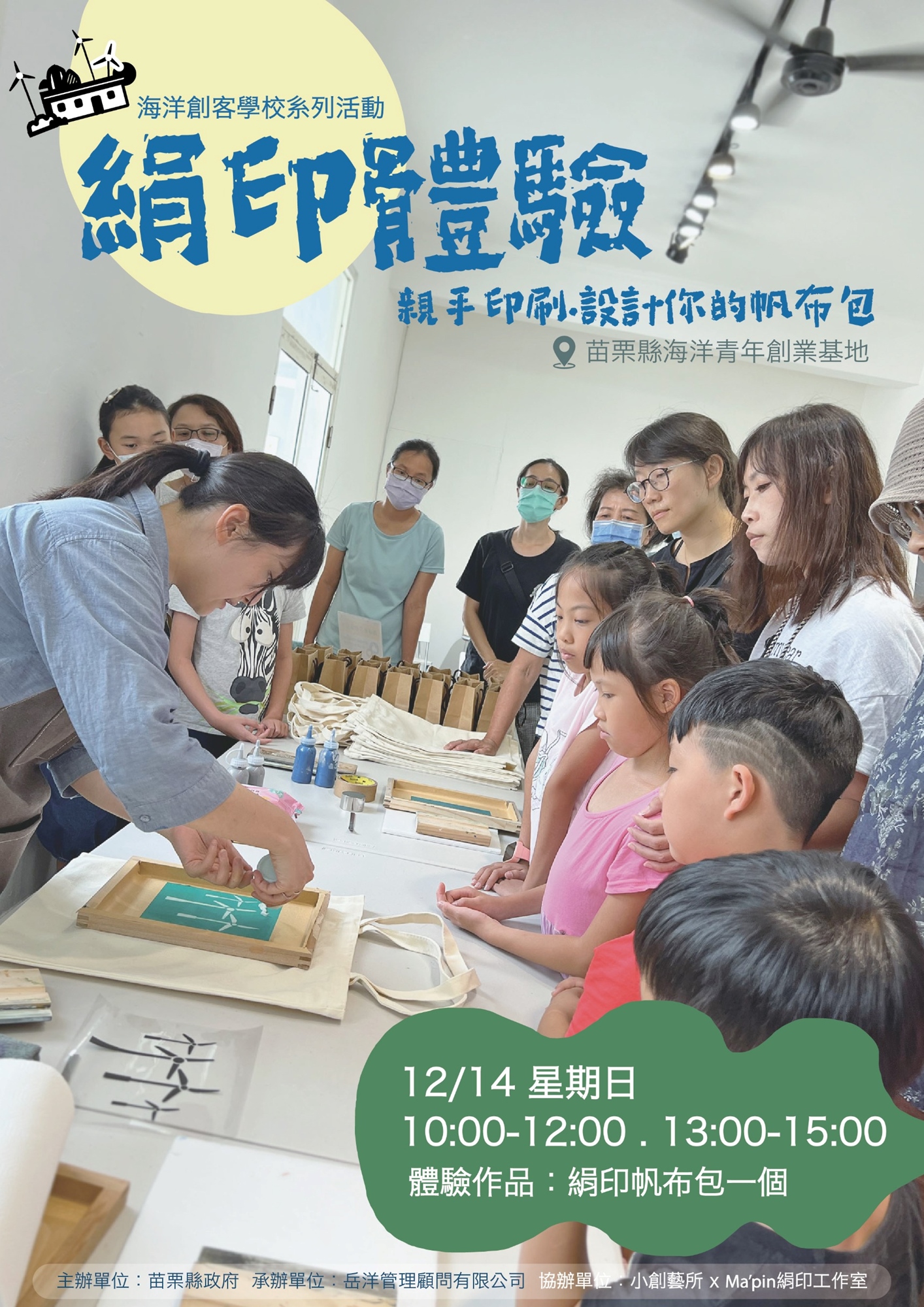 活動名稱: 海洋創客學校系列活動-12/14絹版印刷體驗活動