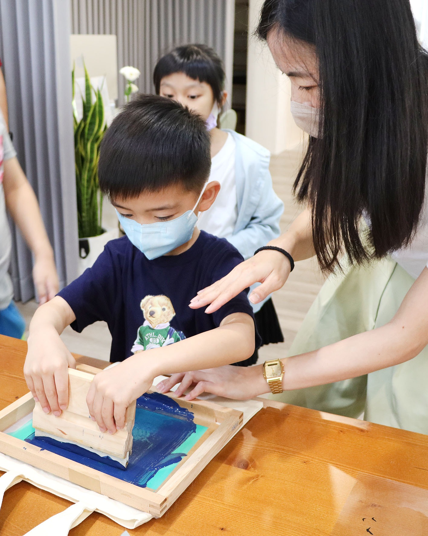 參與者在木框與油墨之間,慢慢拉出一層溫度,把風機、浪花與海邊的步伐印進帆布包裡。