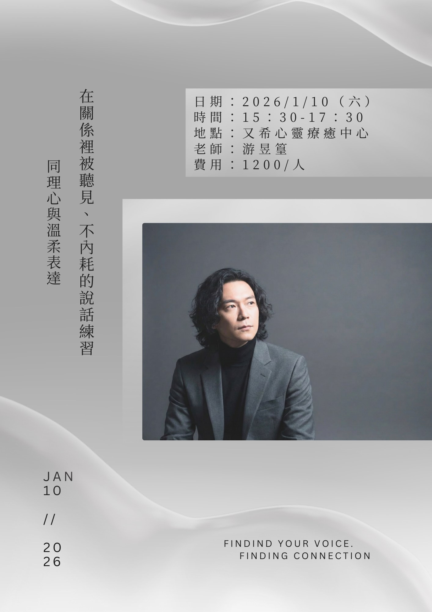 我們把「情緒覺察、同理心」和「說話技巧、聲音運用」結合,陪你從內在感受出發,練習在各種關係裡——既照顧自己,又不傷害對方地,把真心話說出口。