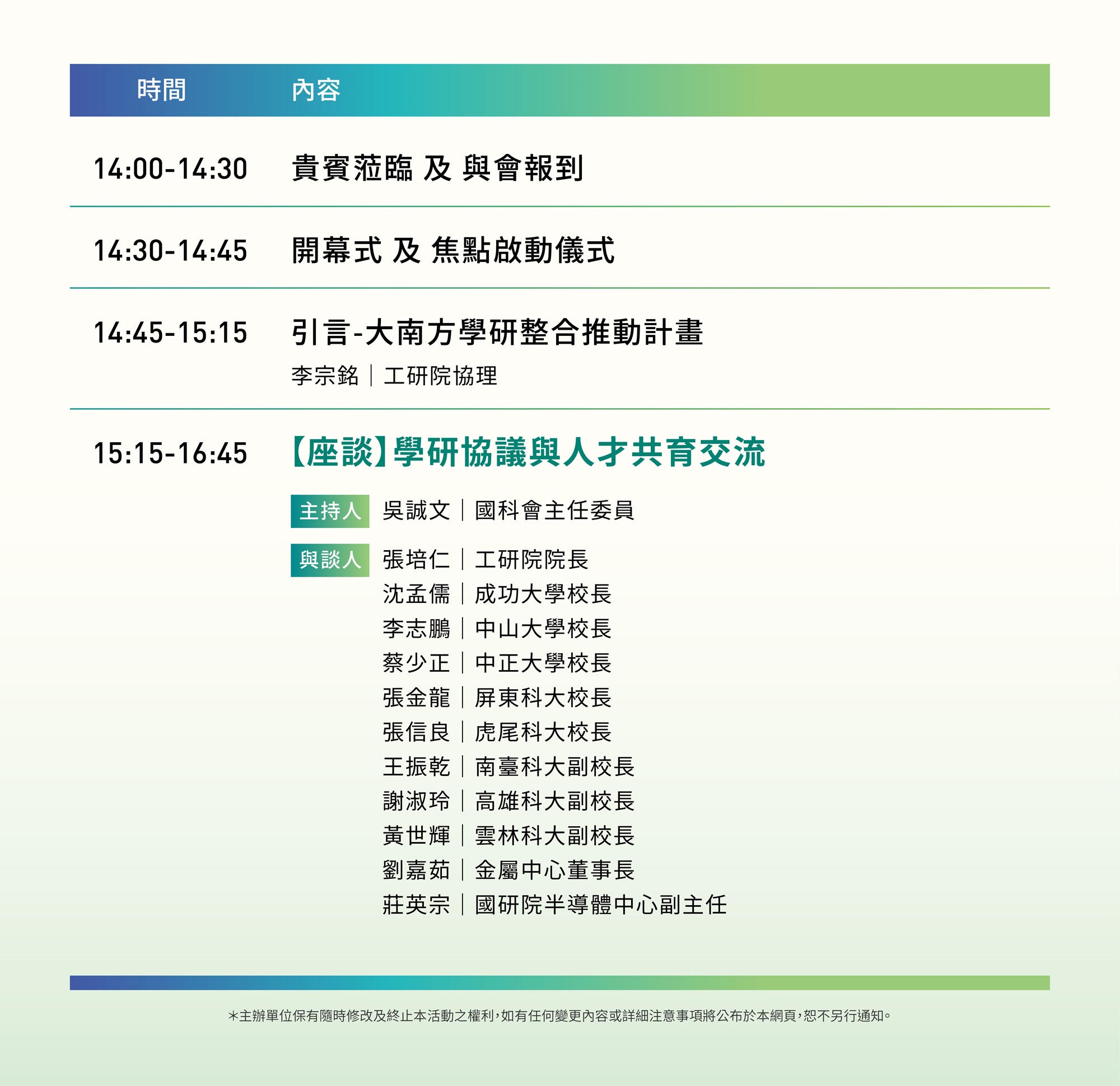 📌主辦單位保留變更議程、講者權利。