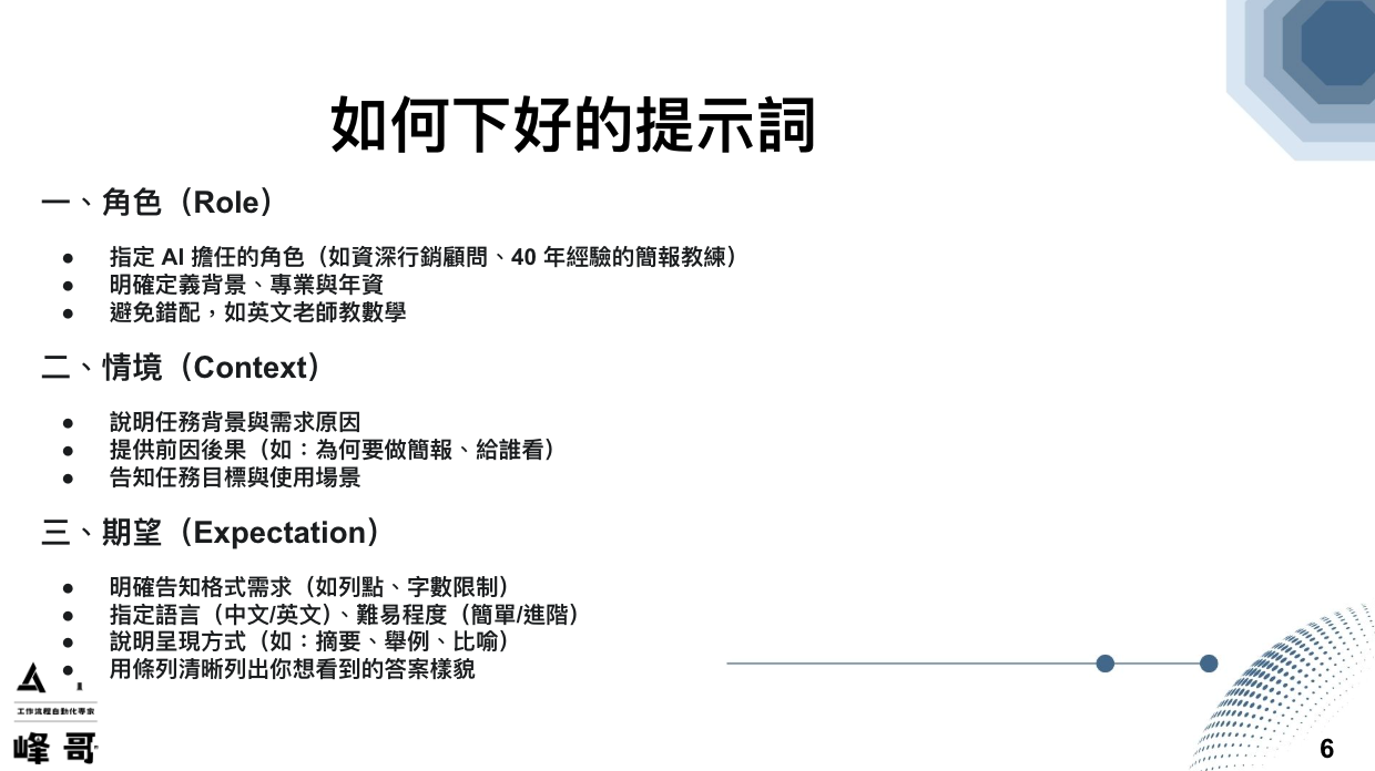 (1) 黃金提示詞架構 RCE:讓 AI 完全理解你想要的內容