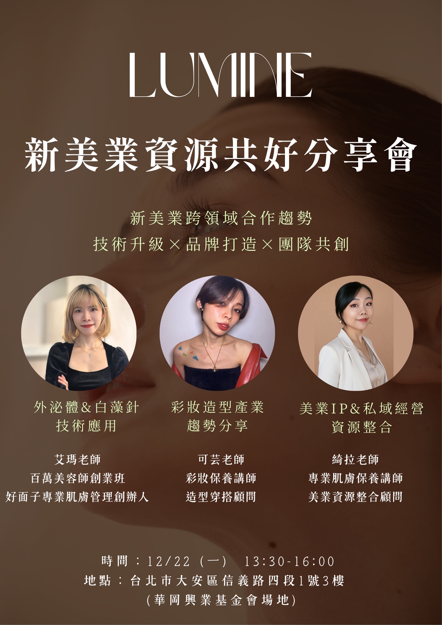 💎《12/22 新美業資源共好分享會|美容 × 彩妝 × 造型 專場》