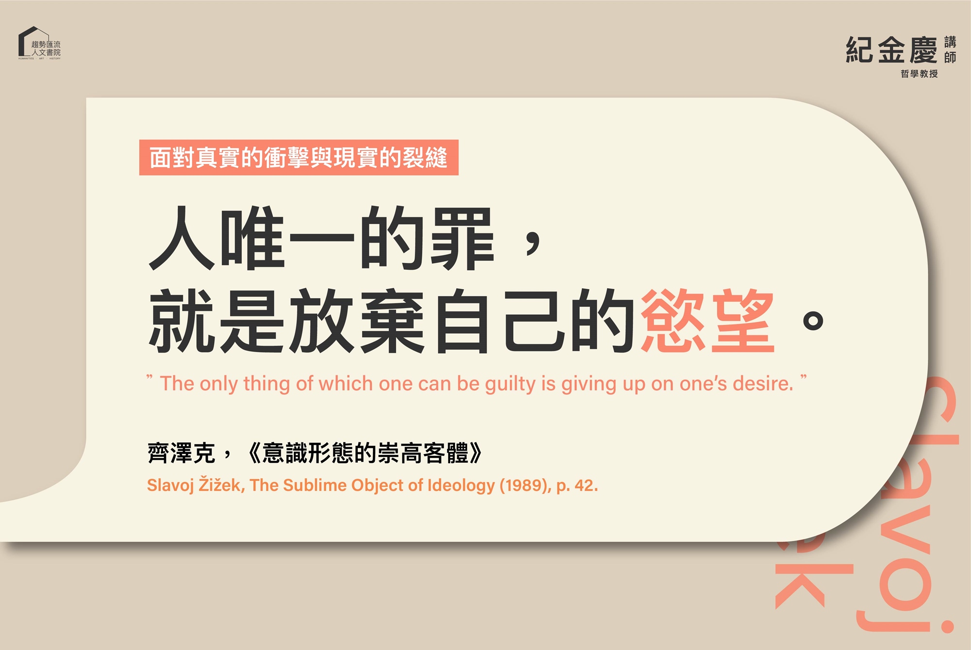 本課程將在前兩集中將為各位詳盡解析齊澤克思想的淵源,尤其是佛洛伊德(Freud)與拉岡(Lacan)對其思想形成的影響。而在後三集的講述當中,則將分別依照齊澤克的三個核心概念:「幻見」、「主體」與「行動」,循序漸進的為學員解說齊澤克究竟是如何剖析我們時代的病症?以及主張我們應如何自我重新定位?並最終回答我們應該如何擘畫社會行動等重要生命課題。