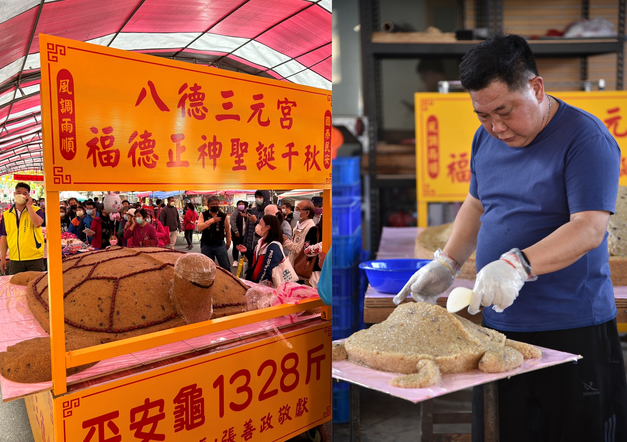 此次合作師傅為八德義興社的二代邱師傅,義興社是八德當地歷史悠久的米糕社,不但負責千人米龜DIY的備料,更是製作了每年千斤市長龜。目前義興社是八德地區剩餘兩家米糕社中其中一家,選用食材天然,採古早做法。