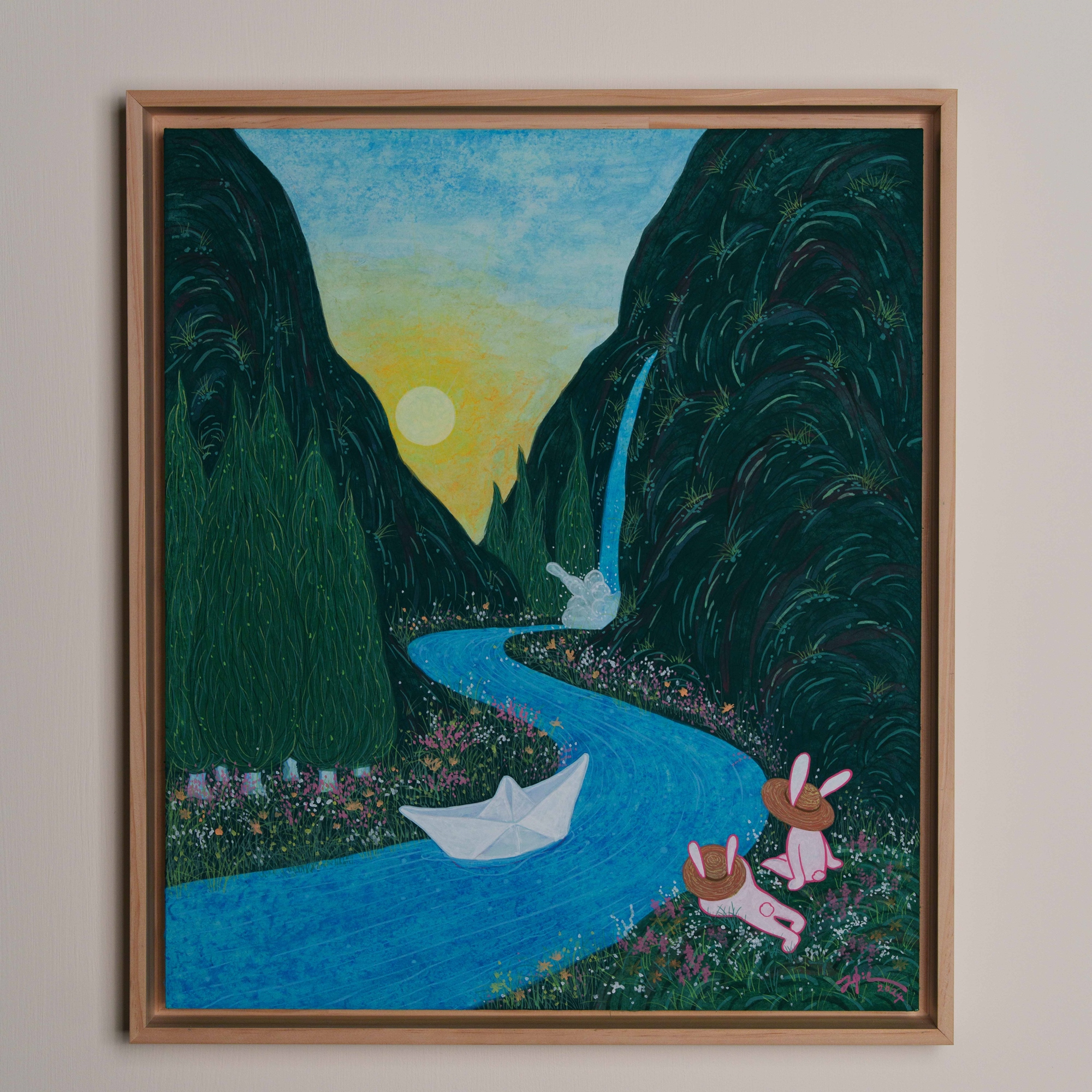 靈感源於兒時與祖母在森林中放紙船的回憶,將童年的美好轉化為綠意盎然的奇幻森林。無表情的兔子是創作中的主角。代表著現代人面對不安與不確定未來的具象化,在森林中自由地冒險,引領觀者與遺失童心相遇、重拾生命原動力。