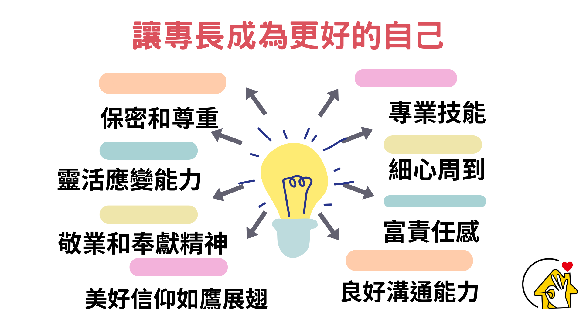 AI智慧家政管家、第二專長的開創者、長者家庭最溫暖的後盾。